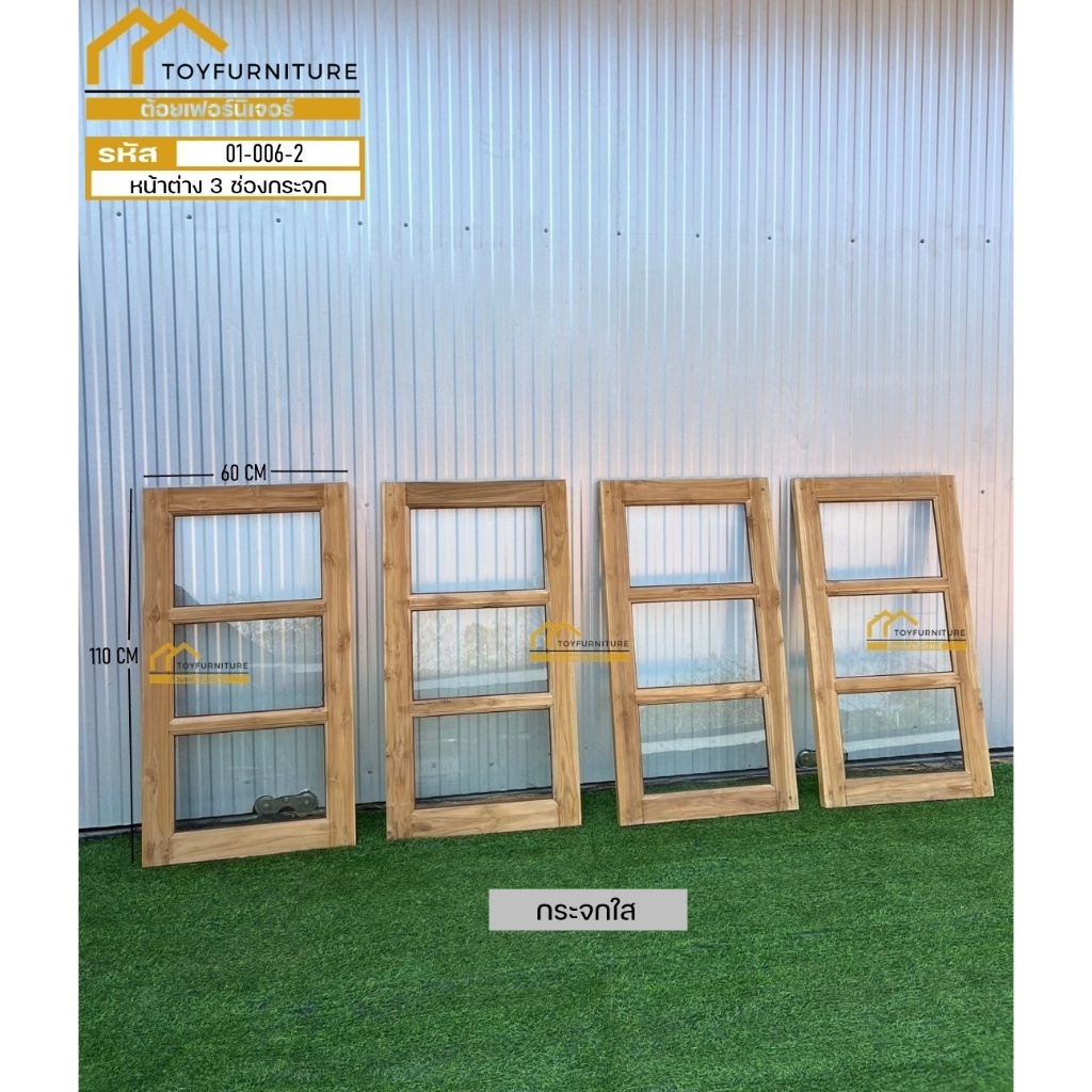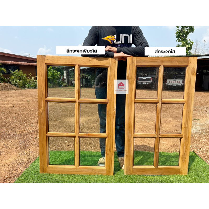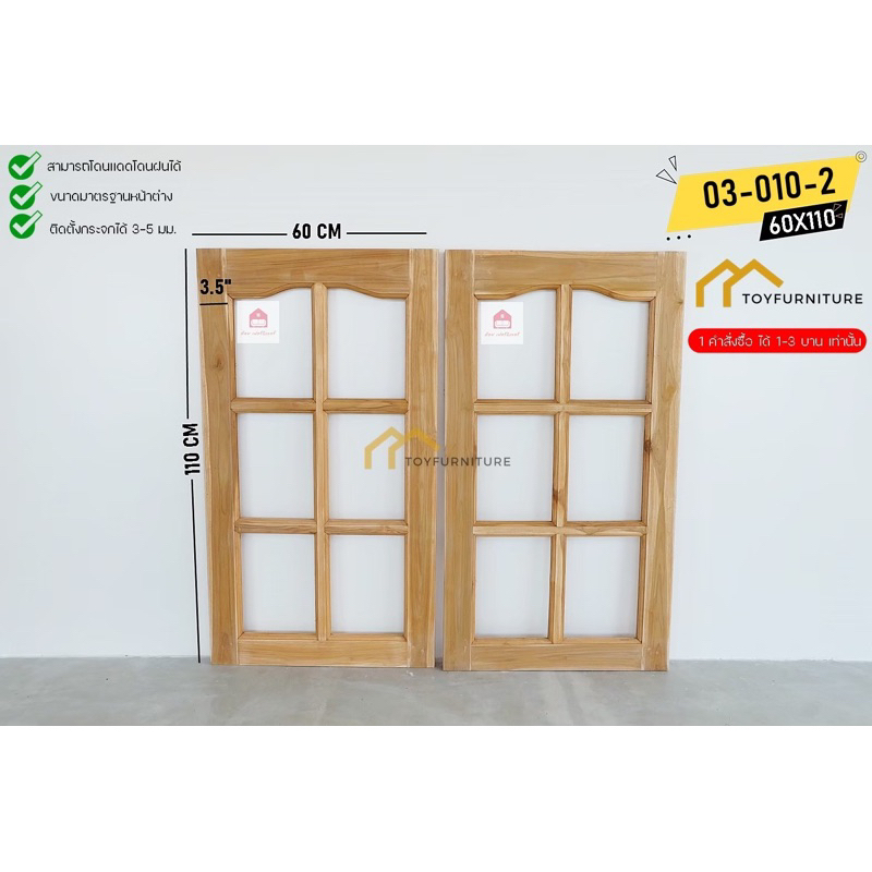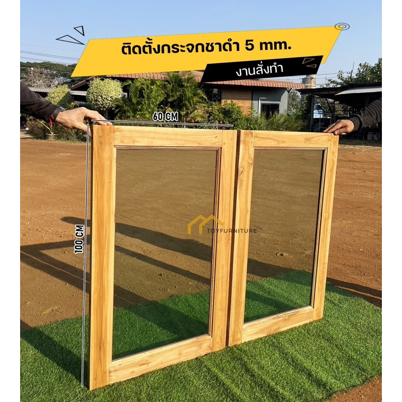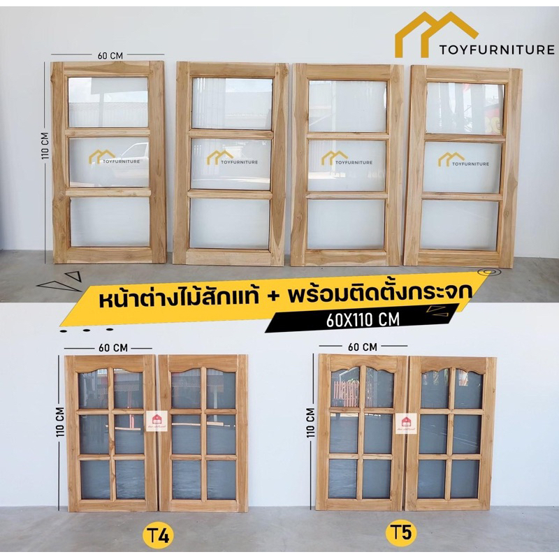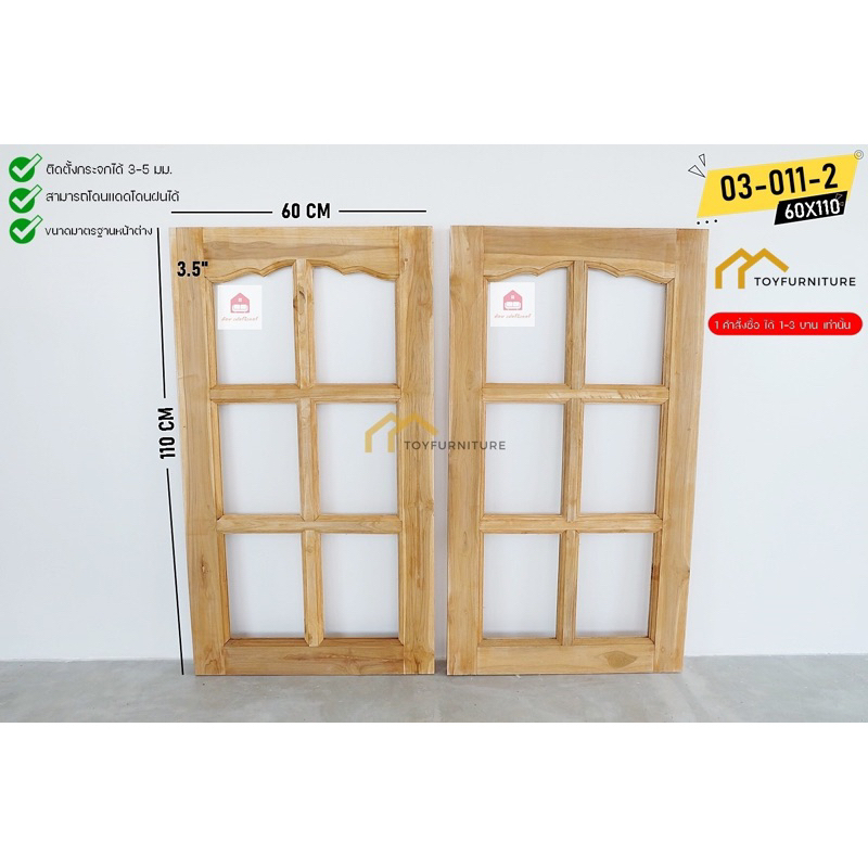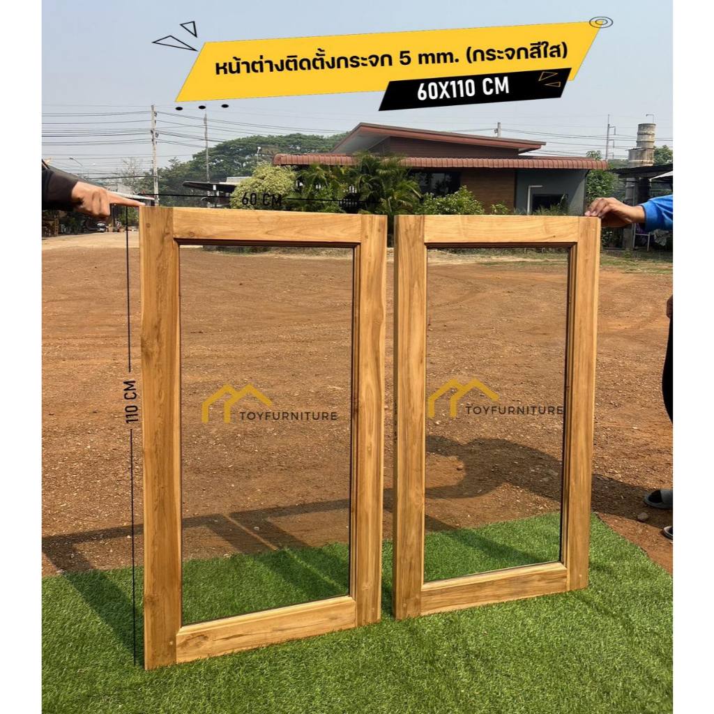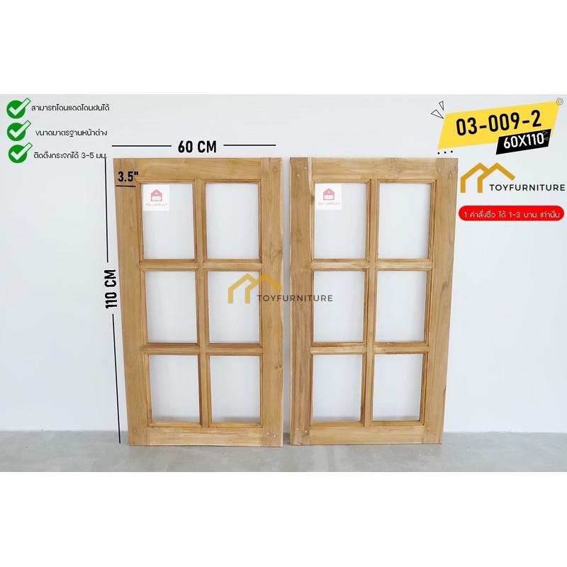 🪟 จัดส่งฟรี ! หน้าต่างไม้สักพร้อมติดตั้งกระจก 60X110 CM