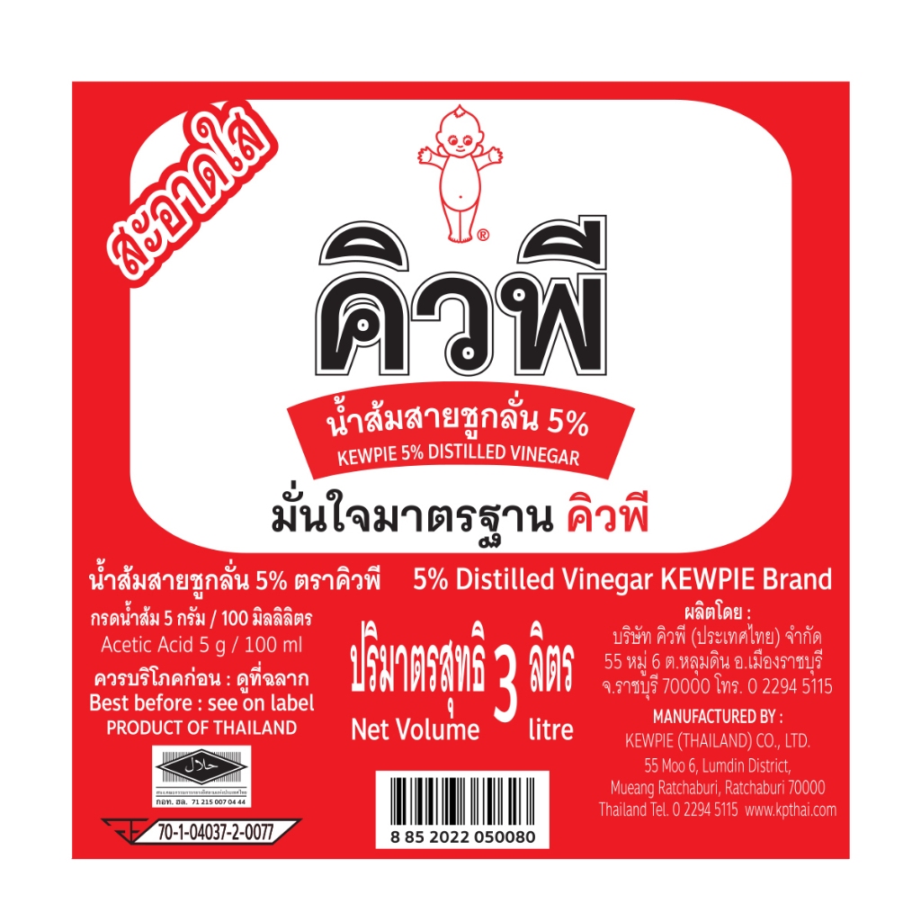 KEWPIE 5% Distilled vinegar น้ำส้มสายชูกลั่น 5% คิวพี 3 ลิตร