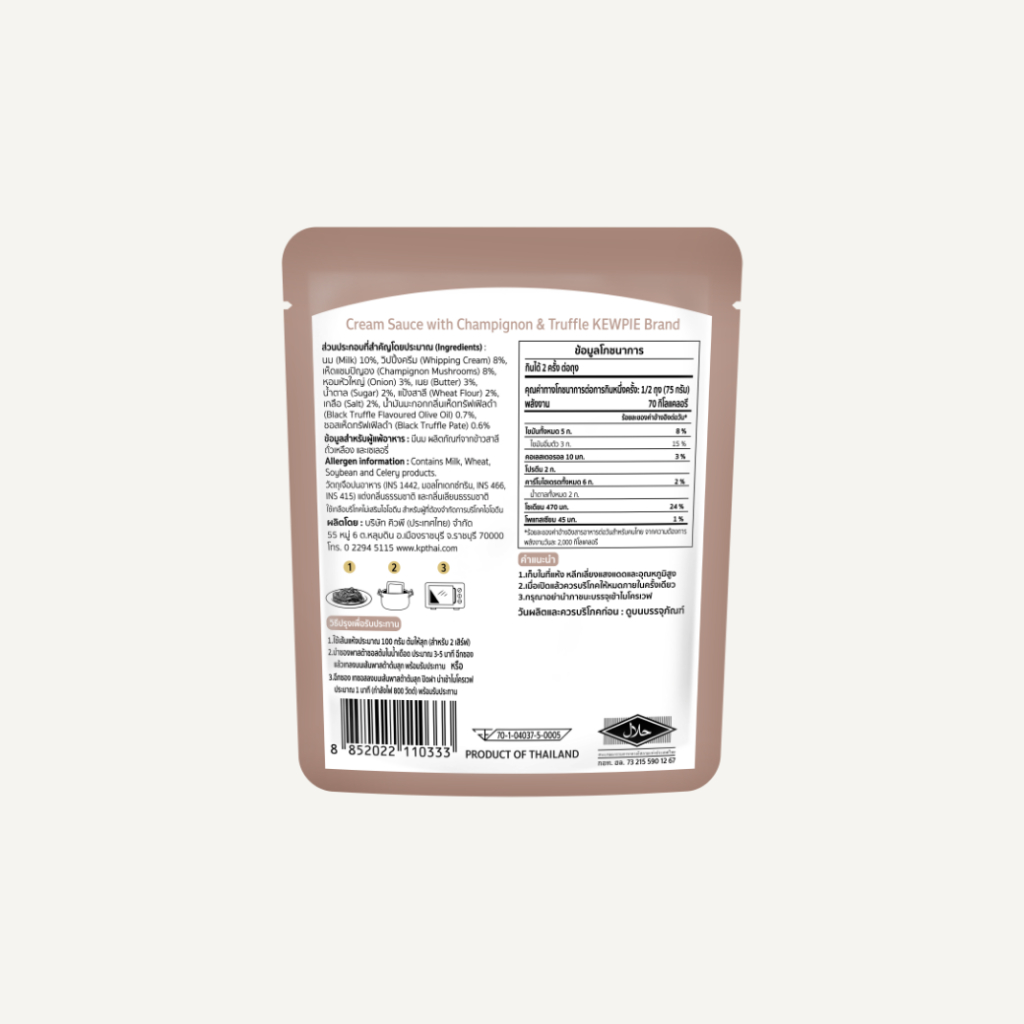 KEWPIE Cream Sauce with Champignon & Truffle ครีมซอส วิท แชมปิญองแอนด์ทรัฟเฟิล (ผลิตภัณฑ์สำหรับราดพาสต้า) ขนาด 150 กรัม