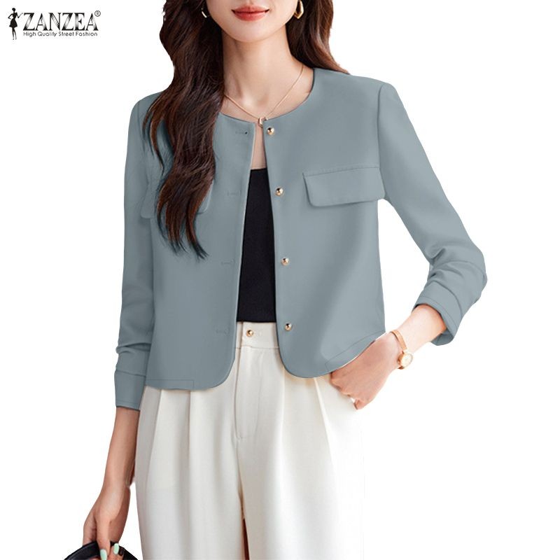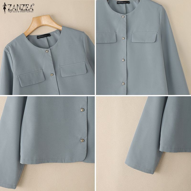 ZANZEA เสื้อเชิ้ตแขนสั้นคอกลมสไตล์เกาหลี เหมาะสำหรับOLและใส่ลำลอง
