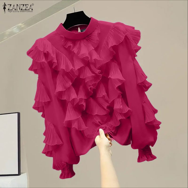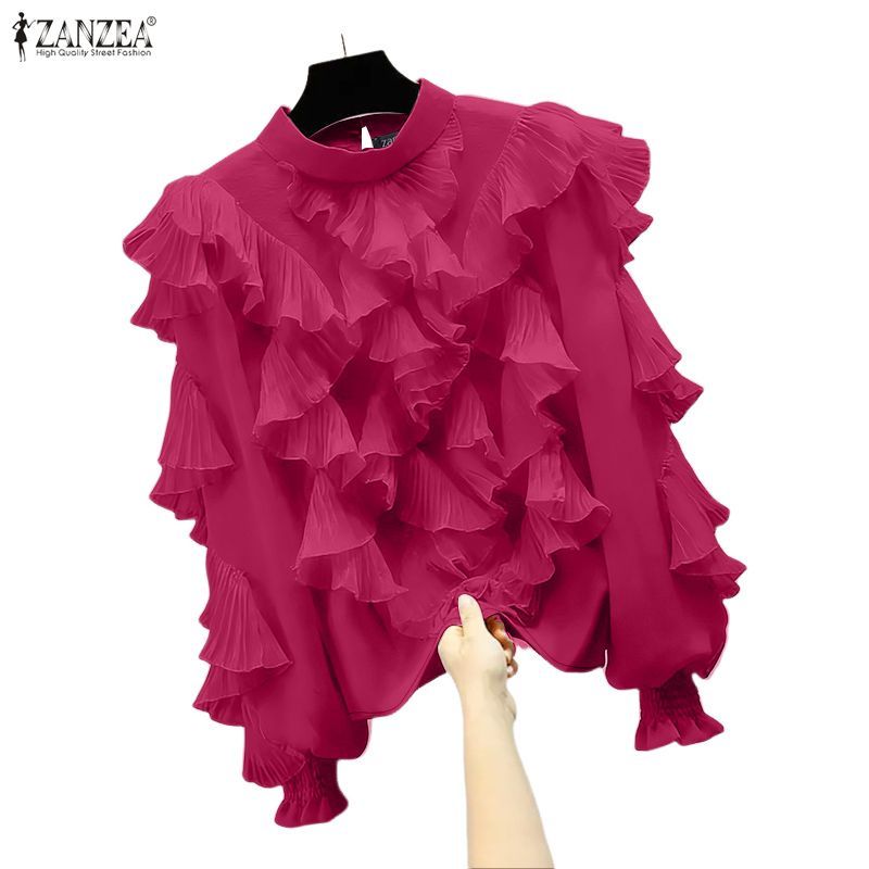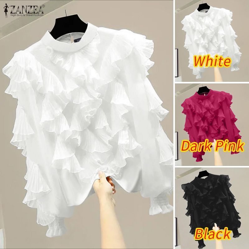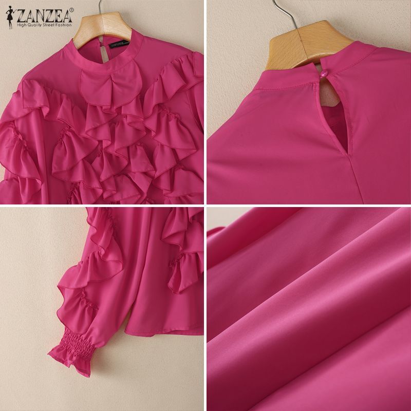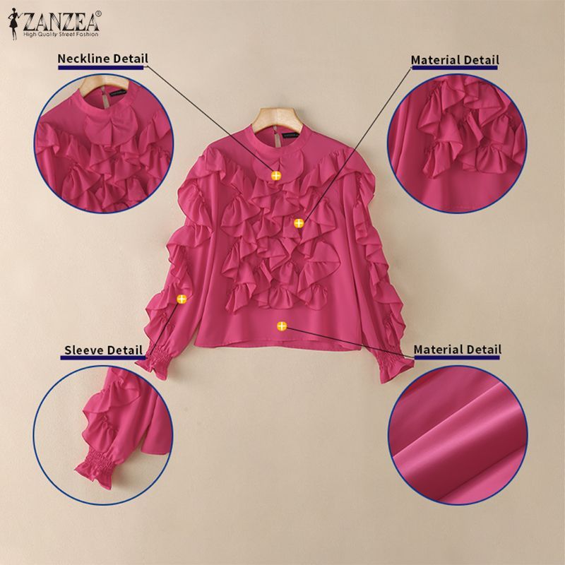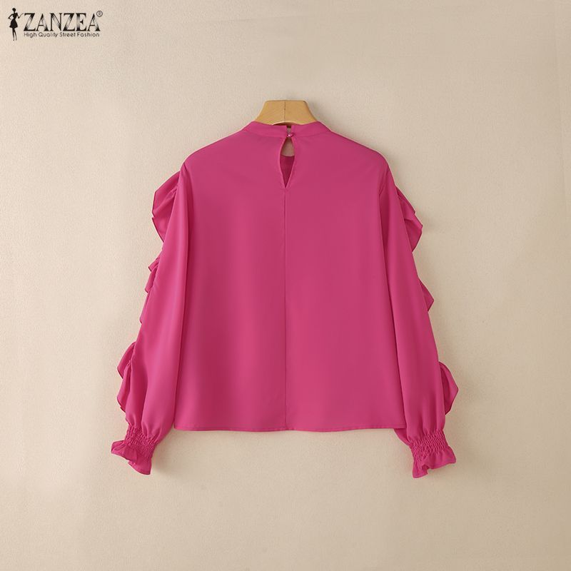 ZANZEA เสื้อแขนยาวสไตล์เกาหลีเรียบหรูกะทัดรัด มีระบายและตกแต่งขอบเสื้อ