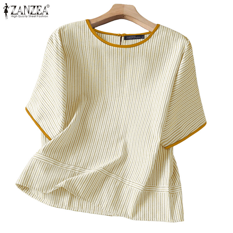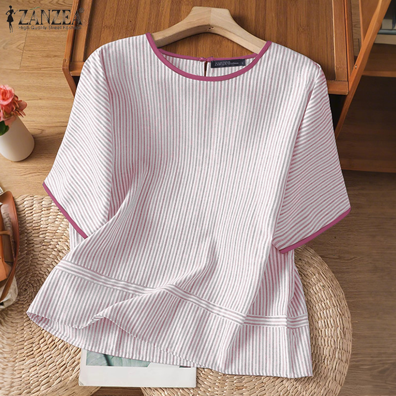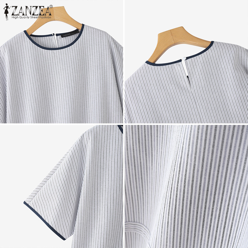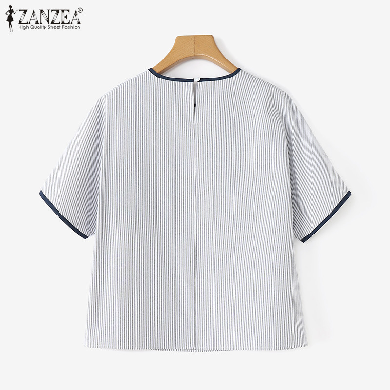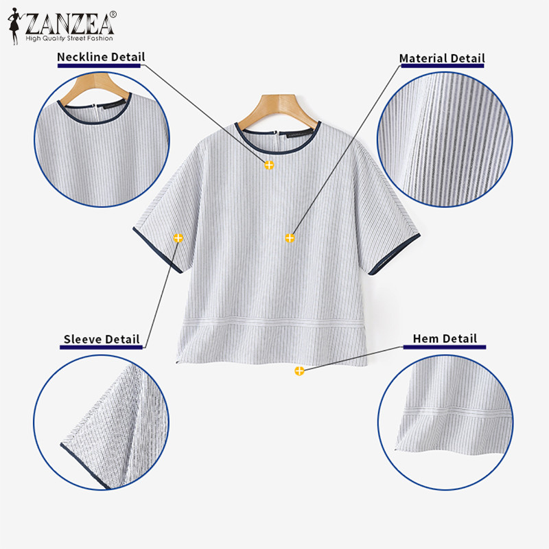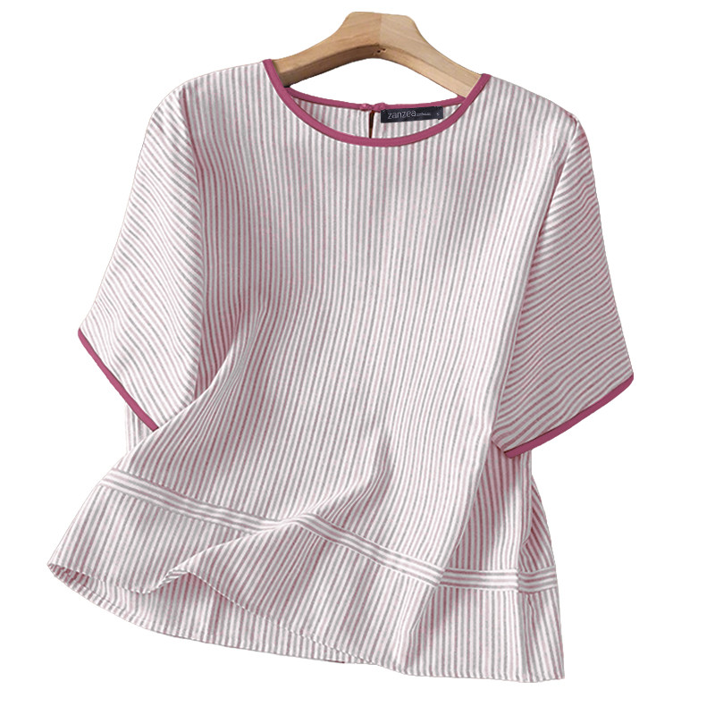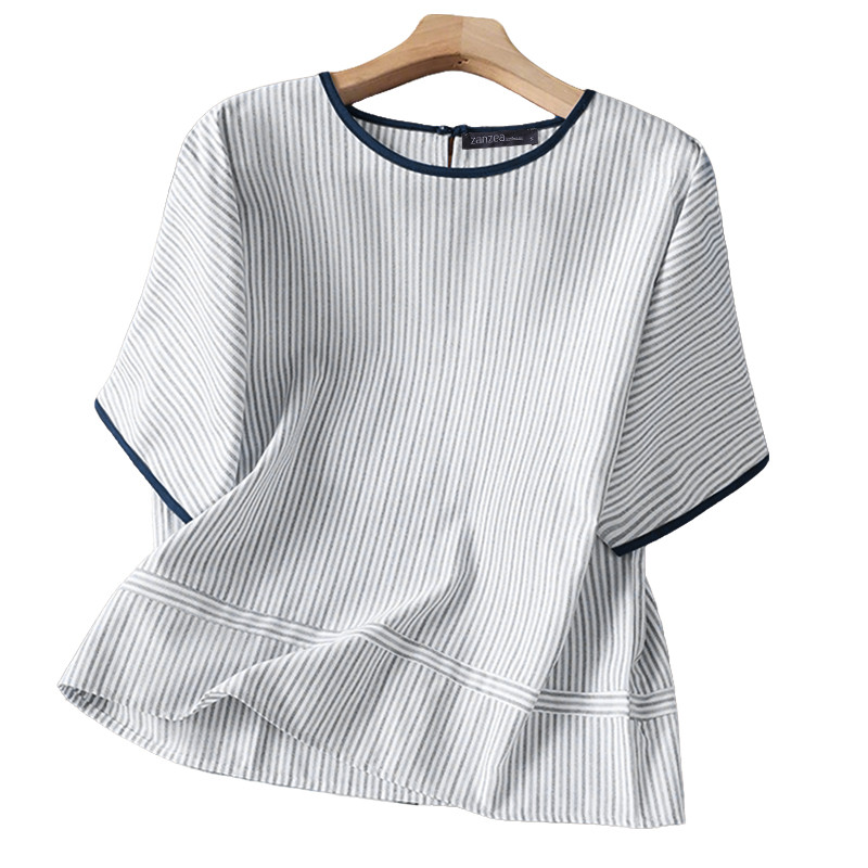 ซานเซีย แฟชั่นเกาหลีลำลอง คอรอบแขนสั้น มีการเย็บลายบนเสื้อหลวม