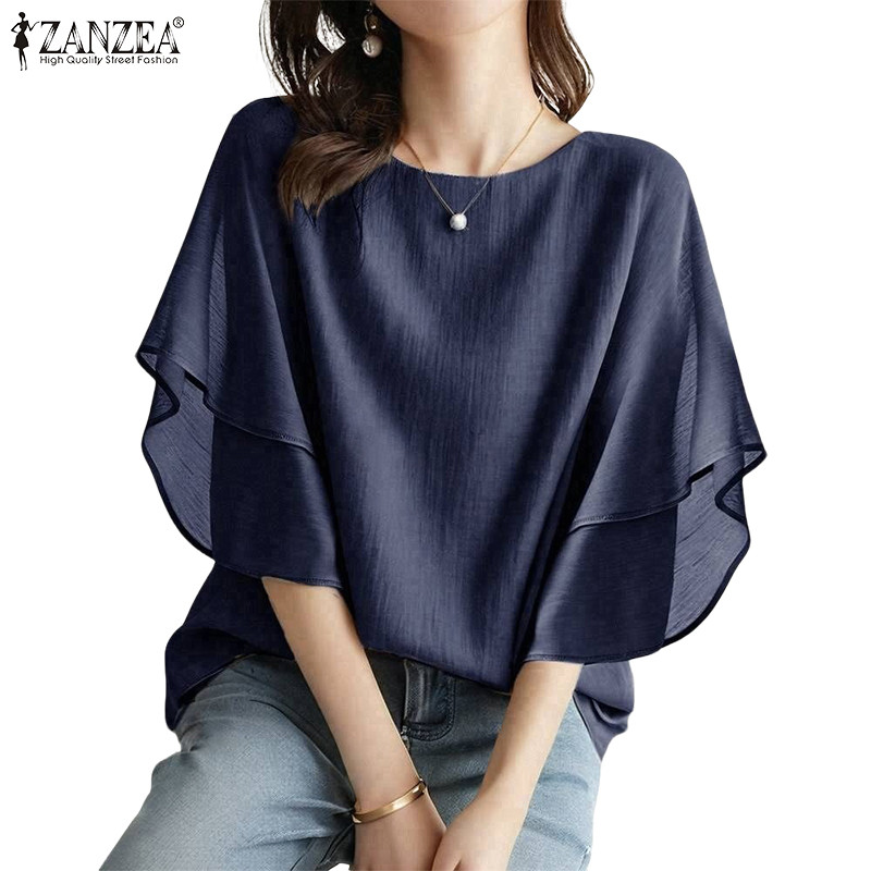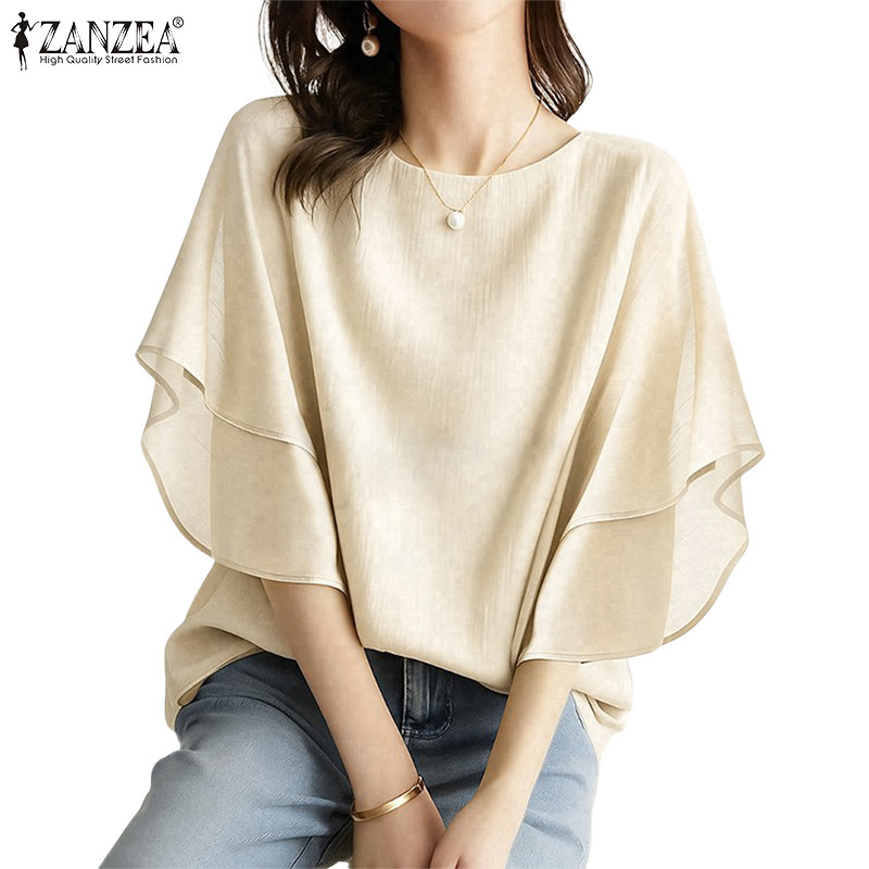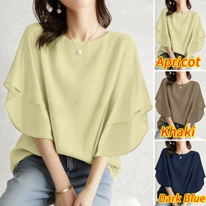 เสื้อลำลองสำหรับผู้หญิงดีไซน์เกาหลี ตัวเสื้อแขนหลวม มีหลายชั้นรอบคอ