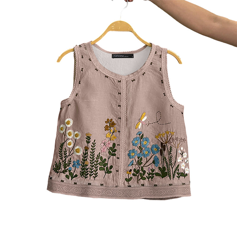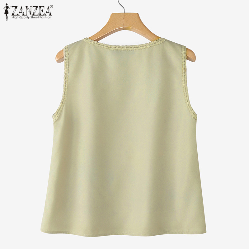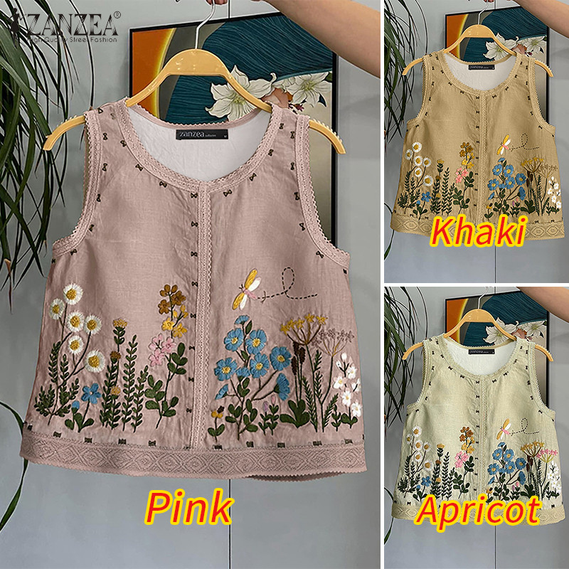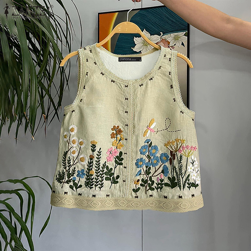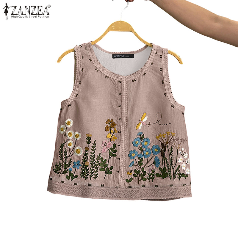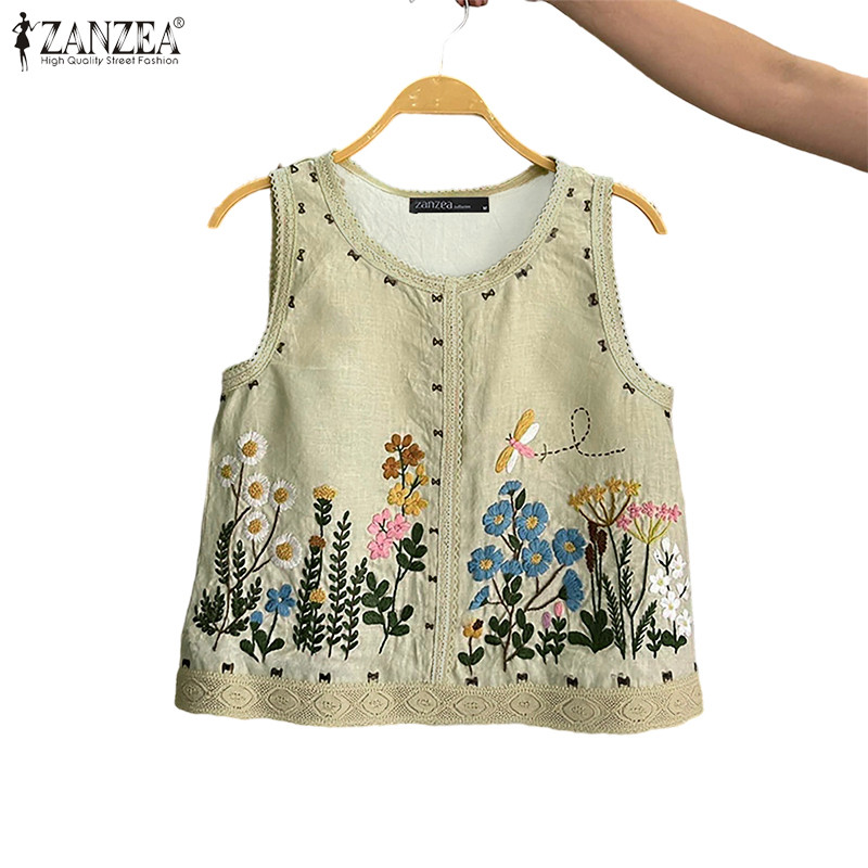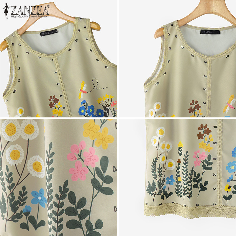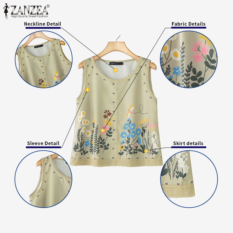 ZANZEA ผู้หญิงเสื้อแขนกุดสไตล์เกาหลีวินเทจ พิมพ์ดอกไม้และลูกไม้