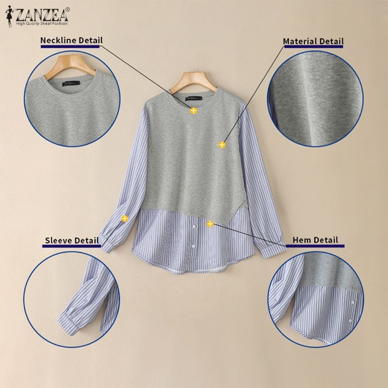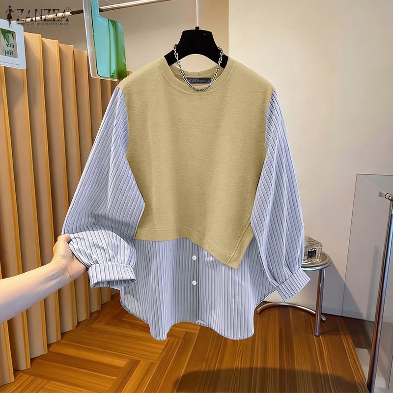 ZANZEA เสื้อสเวตเตอร์ลายทางสไตล์เกาหลีสำหรับผู้หญิง