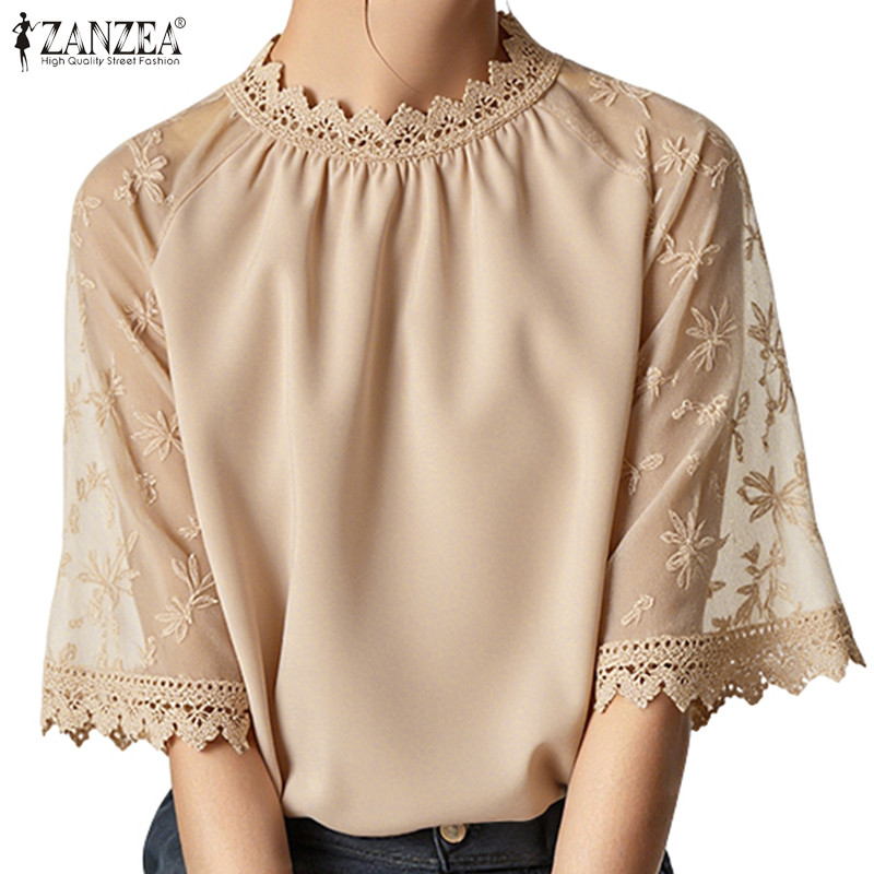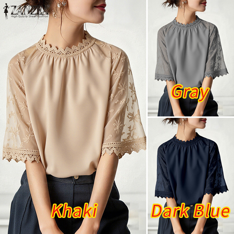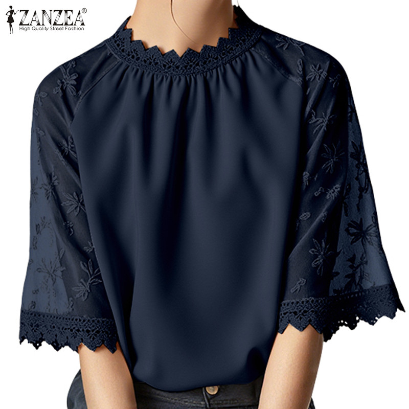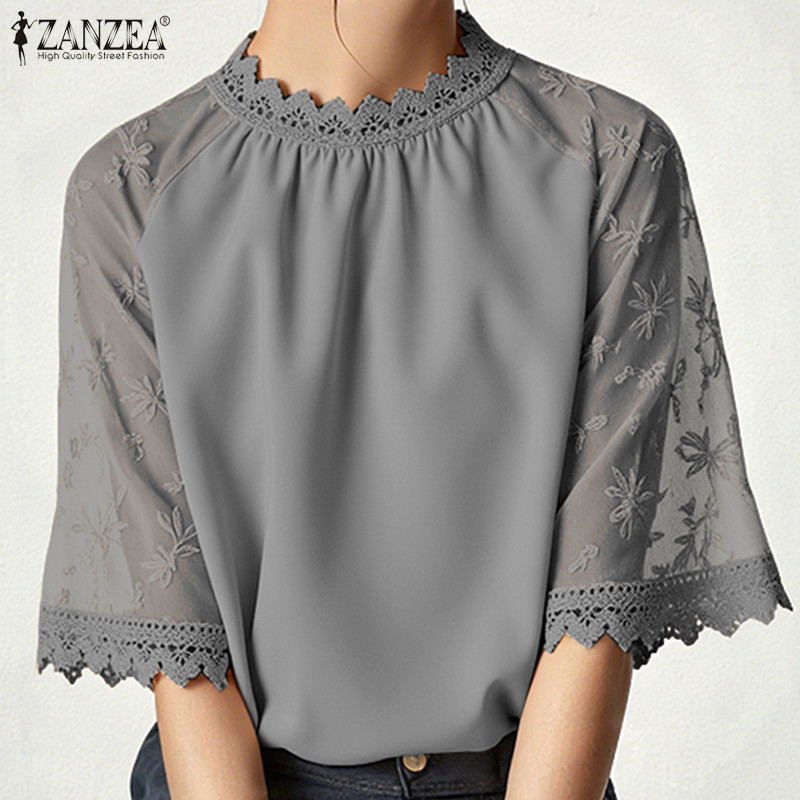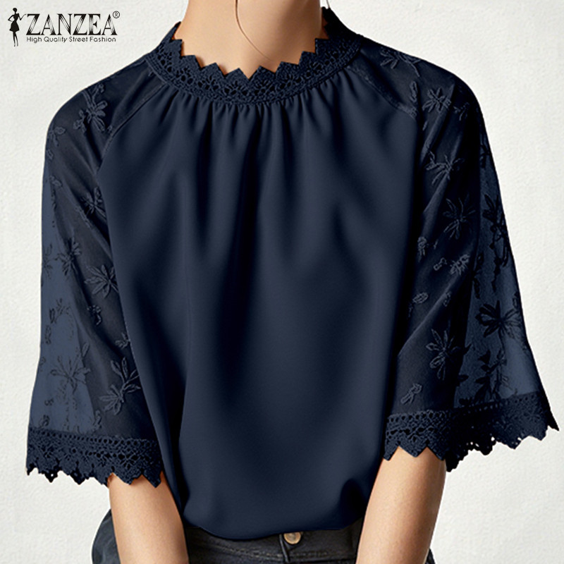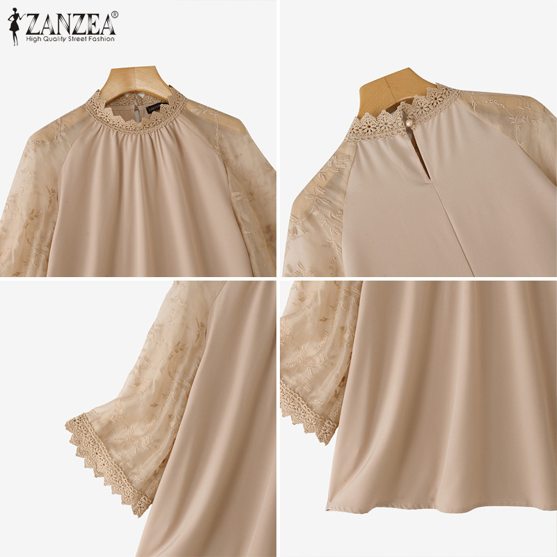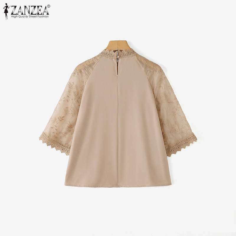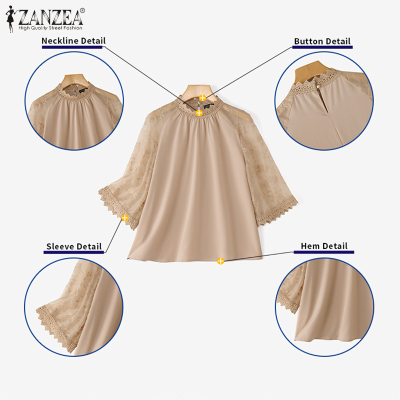 ZANZEA เสื้อแขนลูกไม้โครเชต์ สไตล์เกาหลี เอLEGANT LUXE เสริมรอบคอ ขนาด loose สำหรับผู้หญิง