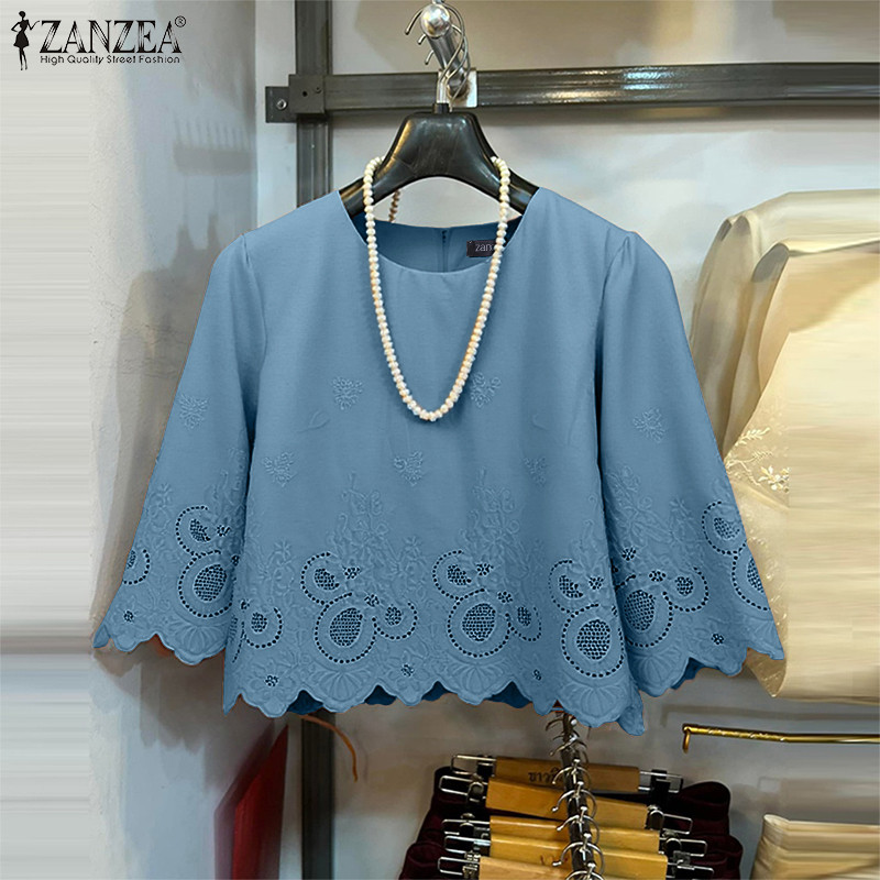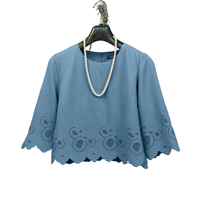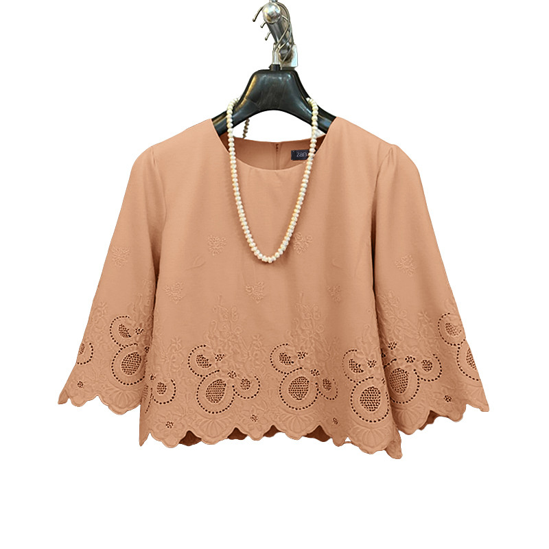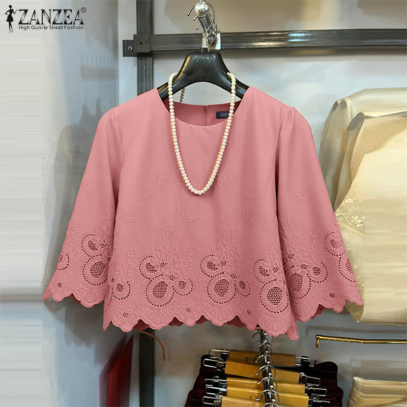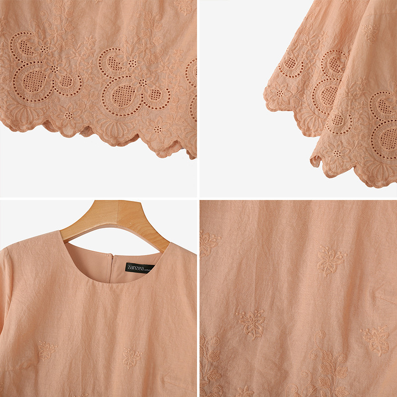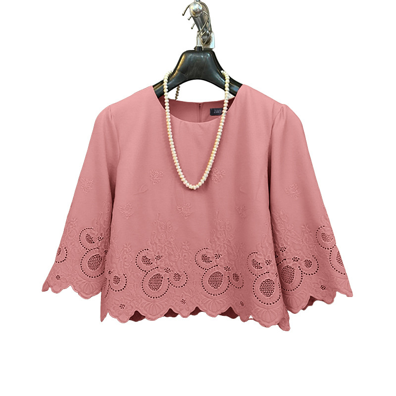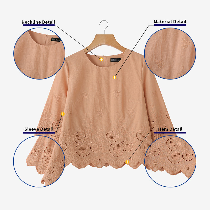 เสื้อผ้าฝ้ายลินินสไตล์เกาหลีสำหรับผู้หญิง ทรงหลวม รอบคอกว้าง แขนยาว 3/4