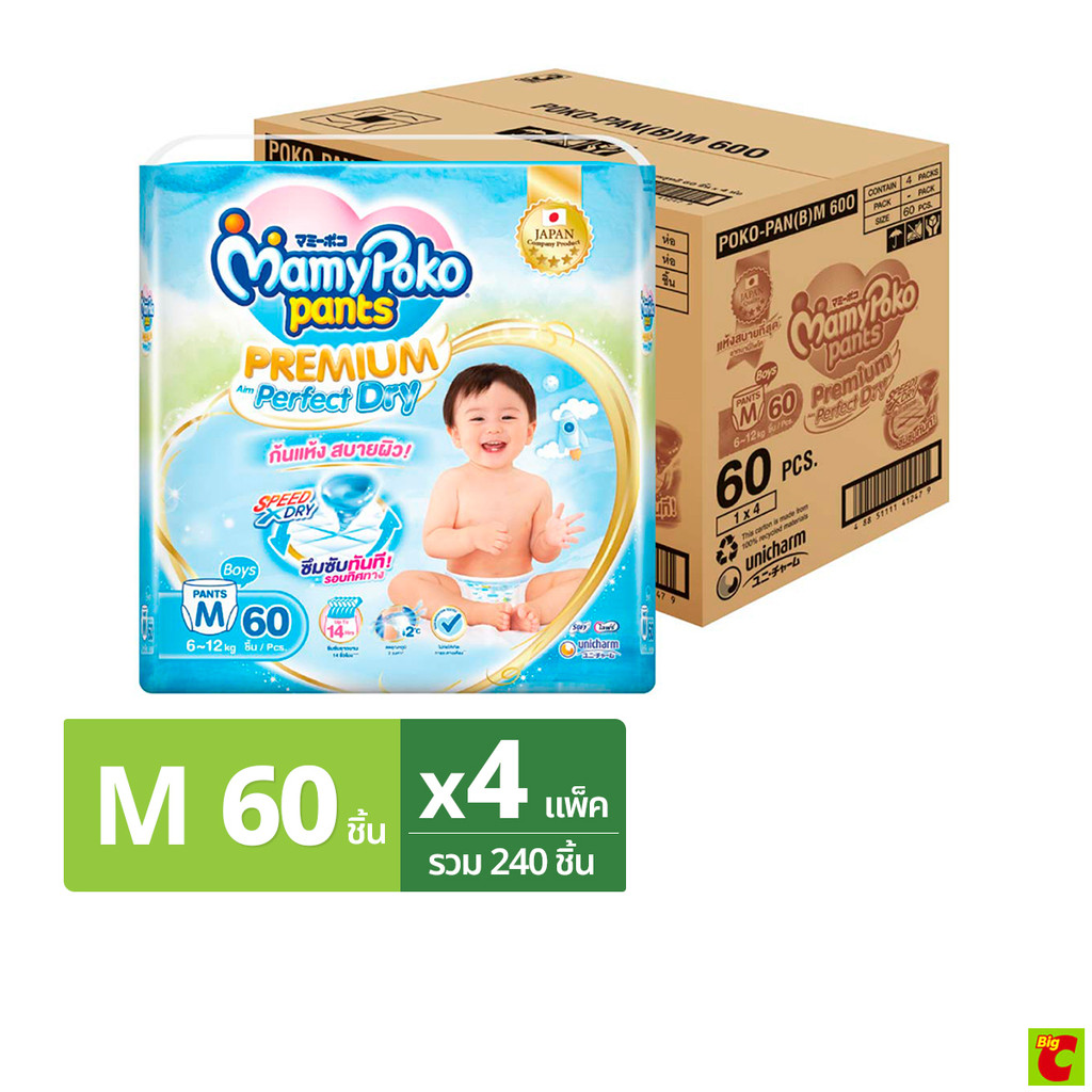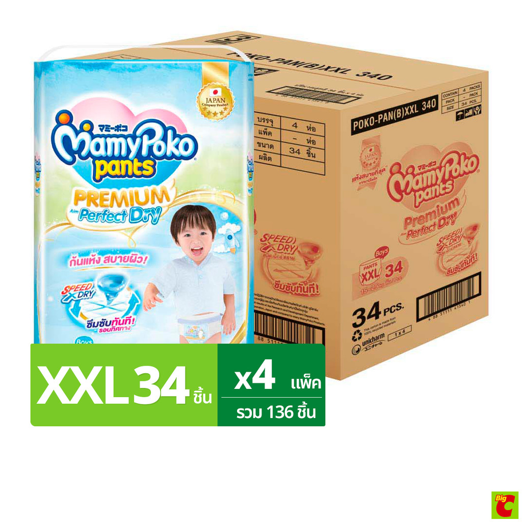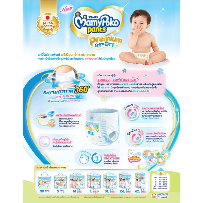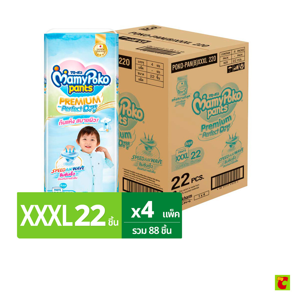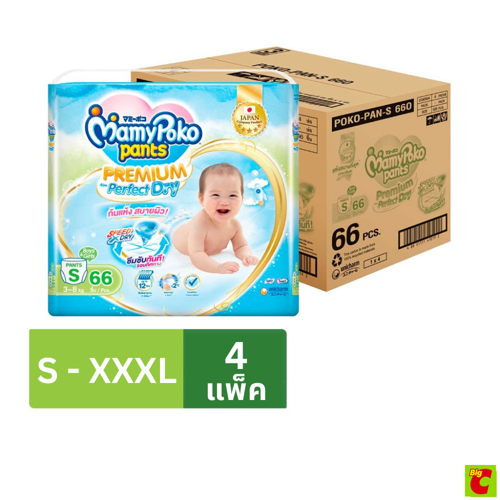 มามี่โพโค แพนท์ กางเกงผ้าอ้อม พรีเมียม เอม เพอร์เฟกต์ ดราย ขนาด S - XXL x 4 แพ็ค