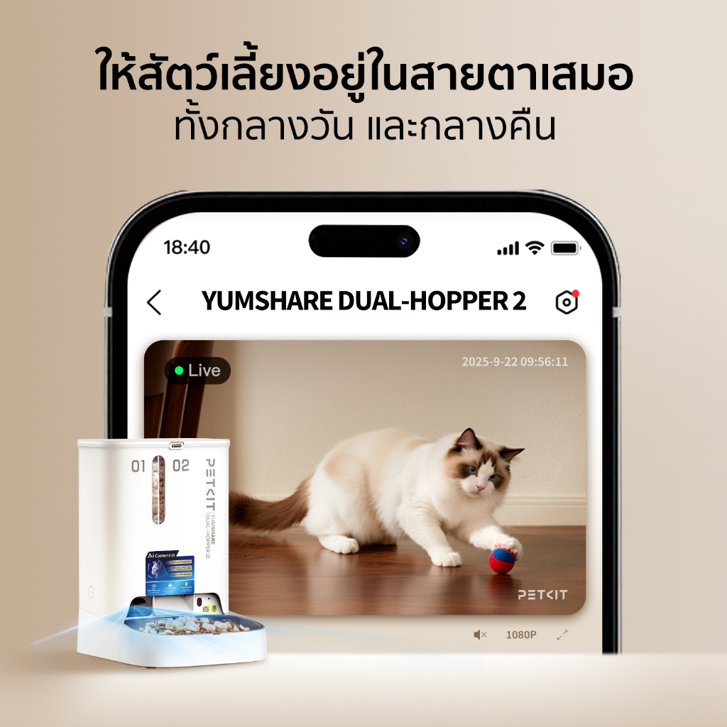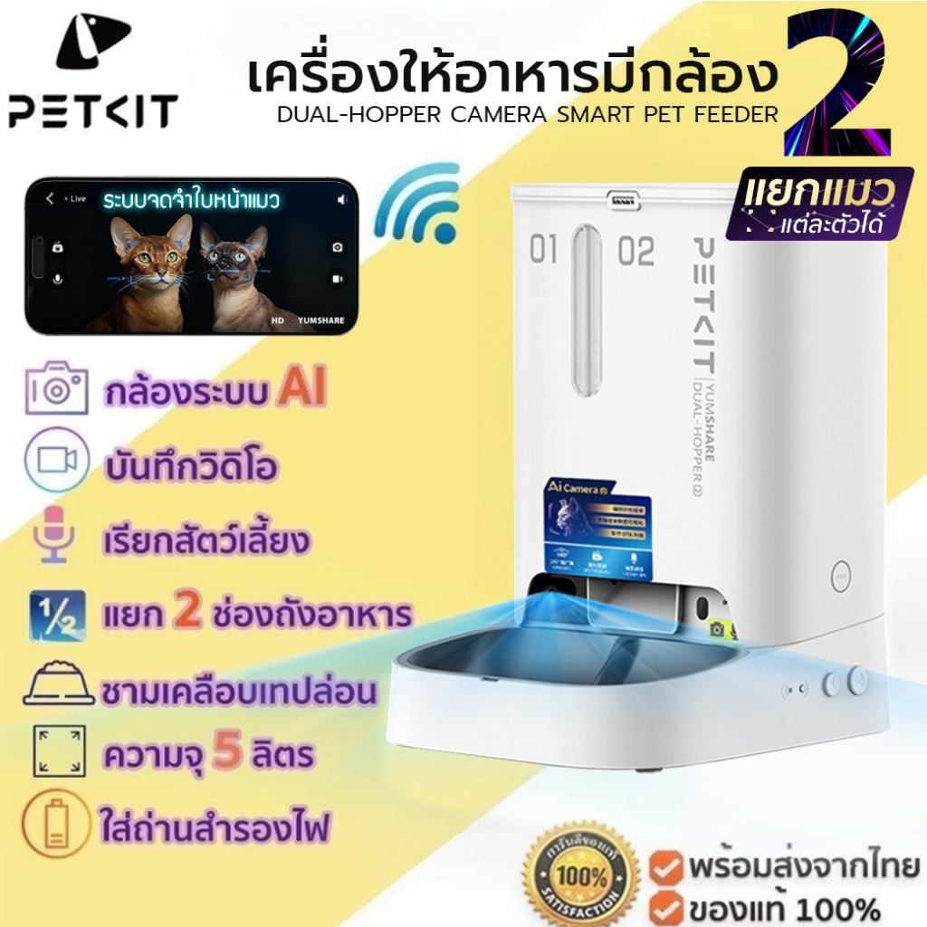 ใหม่ล่าสุด PETKIT YUMSHARE DUAL HOPPER 2 เครื่องให้อาหารมีกล้องiรุ่น 2 เครื่องให้อาหาร ประกัน 1ปี M402
