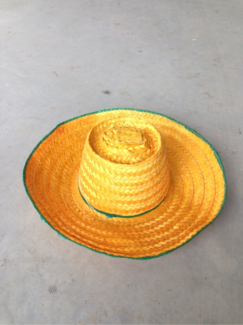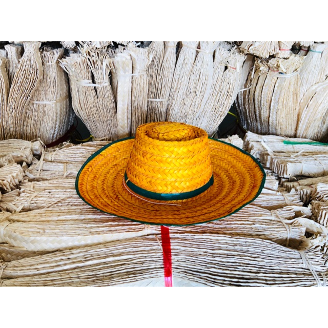 หมวกแดงคัด ไม้ไผ่ย้อมสีส้ม ปีกกว้าง 4 นิ้ว By Niran.hat