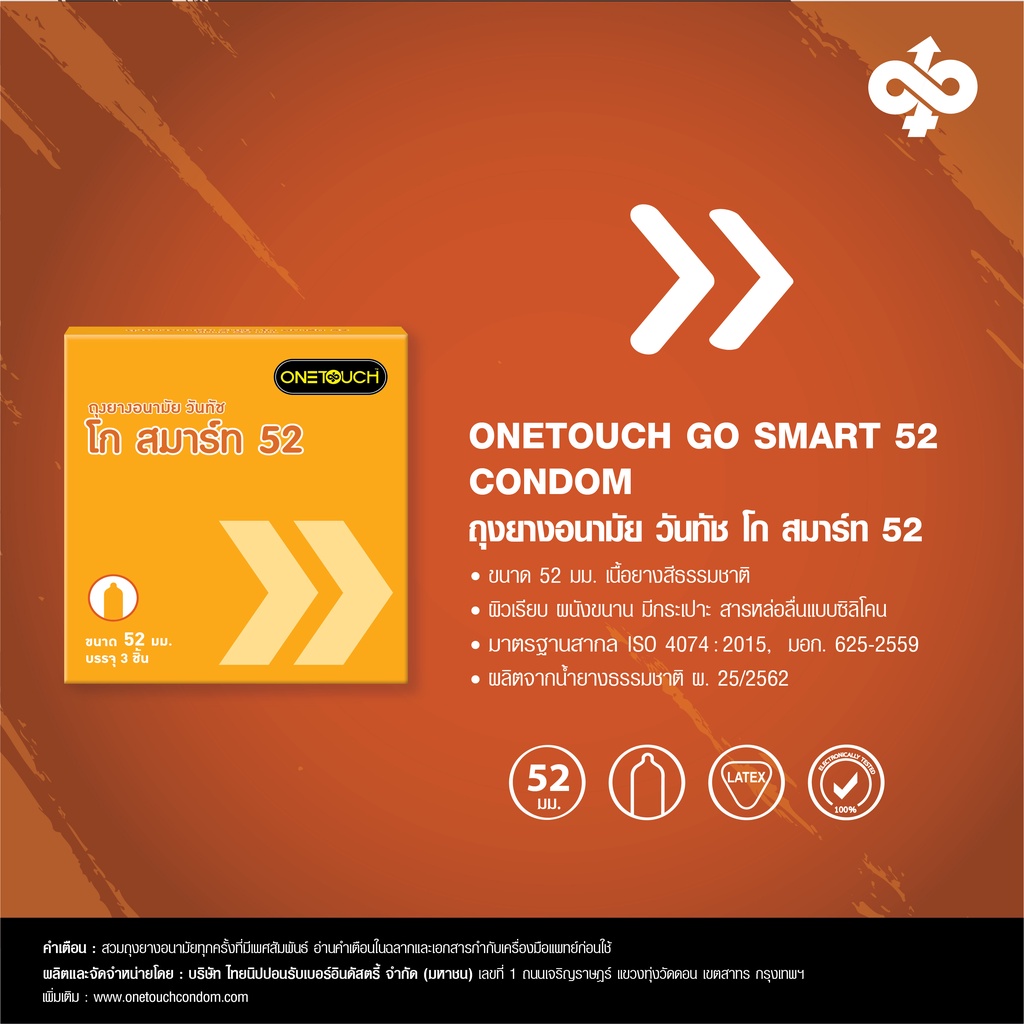 Onetouch ถุงยางอนามัยวันทัช โก รุ่น สมาร์ท 52 มม. 6 กล่อง 18 ชิ้น