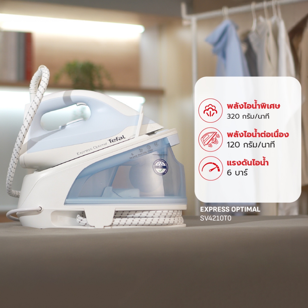 (Online Exclusive) Tefal เตารีดแรงดันไอน้ำ แรงดัน 6 บาร์ SV4210T0 STEAM STATION EXPRESS OPTIMAL 6 bar SV4210T0