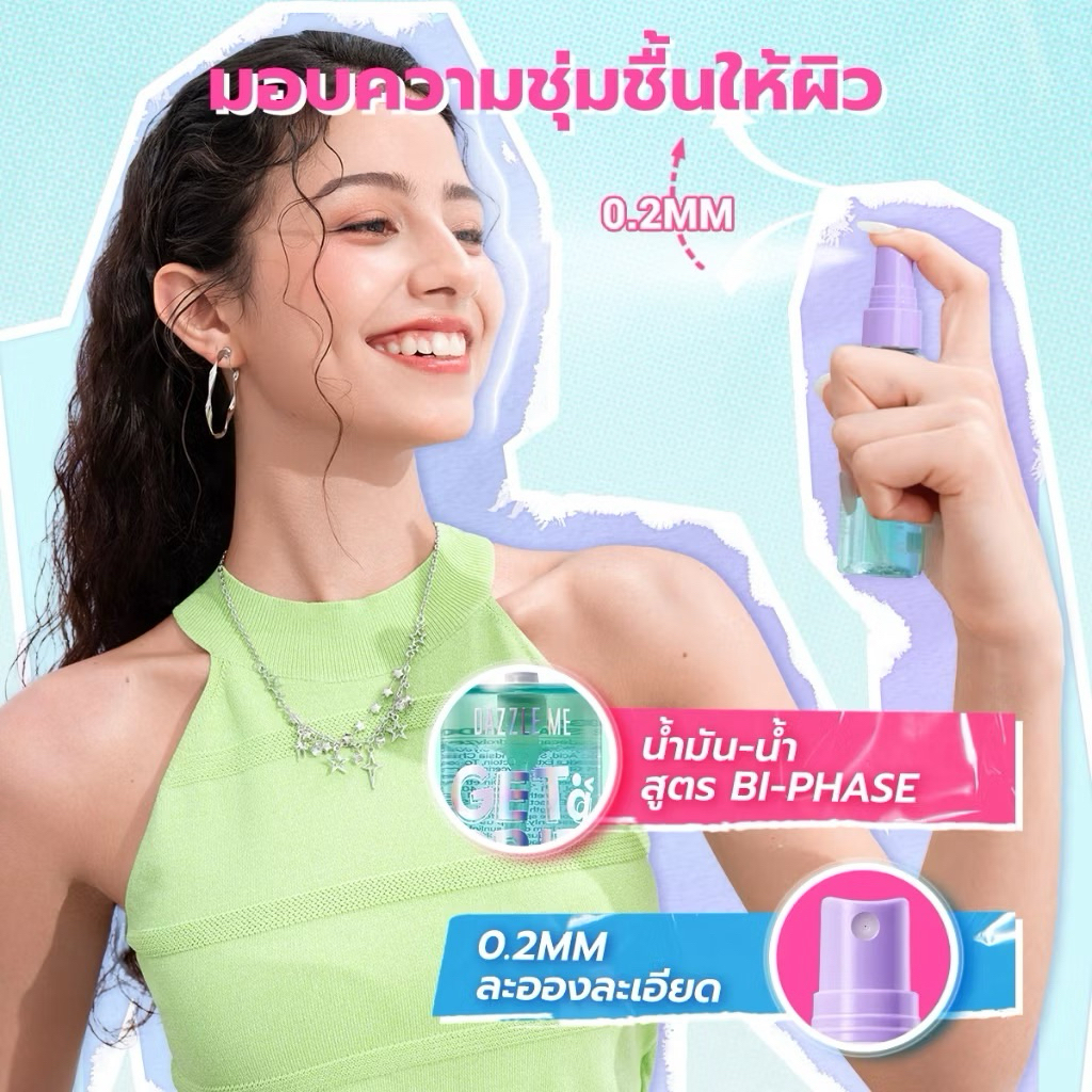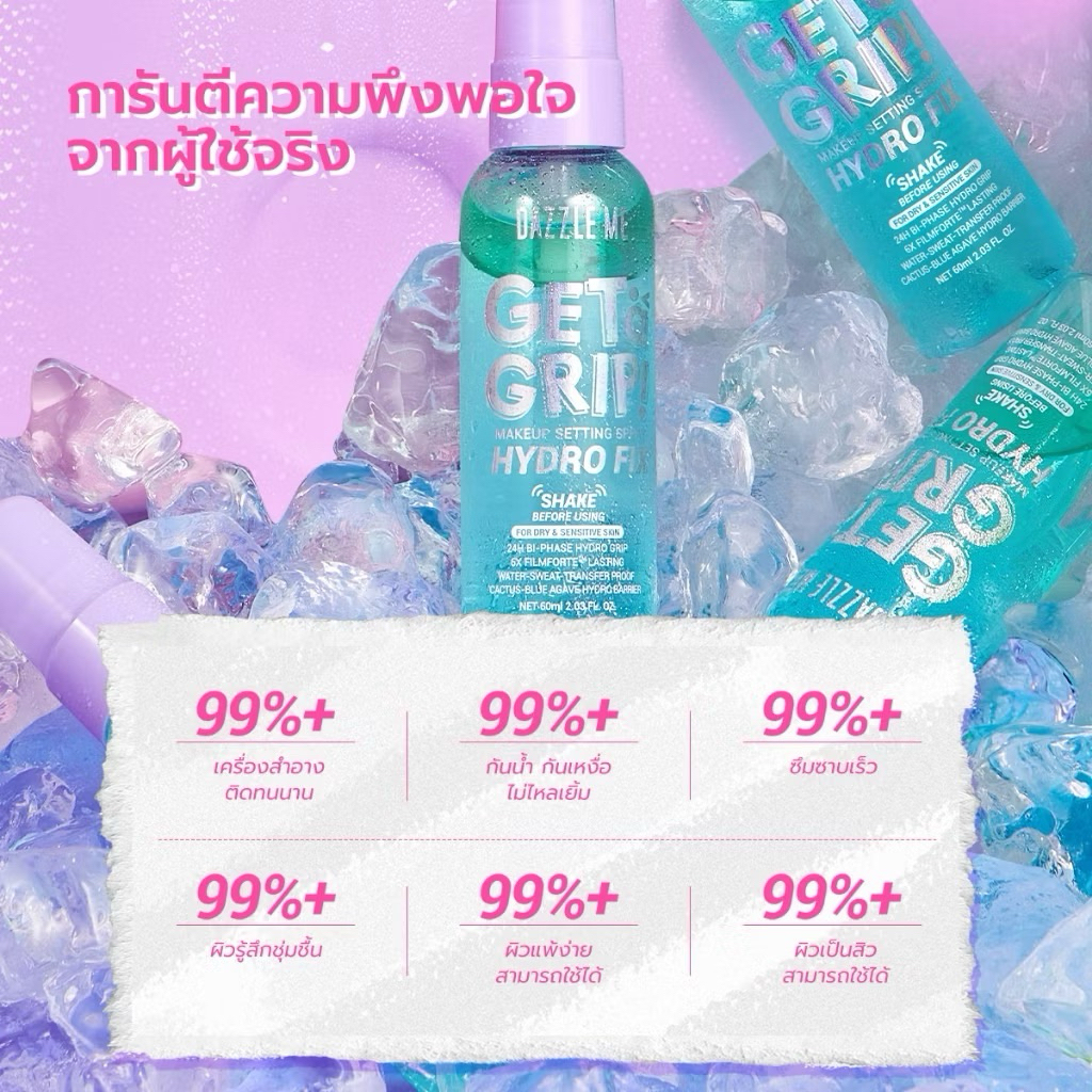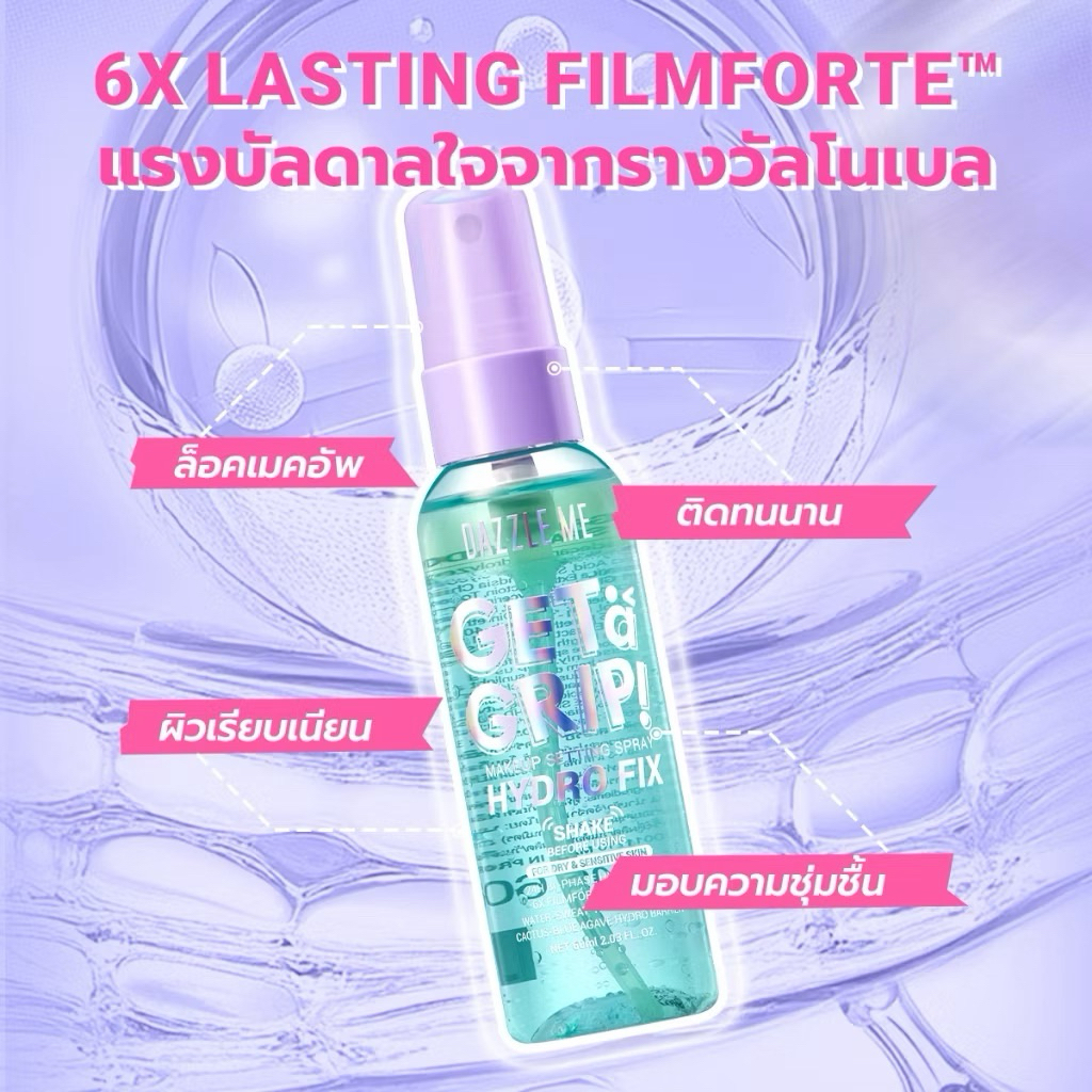 DAZZLE ME Get a Grip! Makeup Setting Spray Hydro Fix สเปรย์ล็อคเมคอัพ ควบคุมความมัน ติดทนนาน ผิวฉ่ำโกลว์ชุ่มชื้น 60ml.