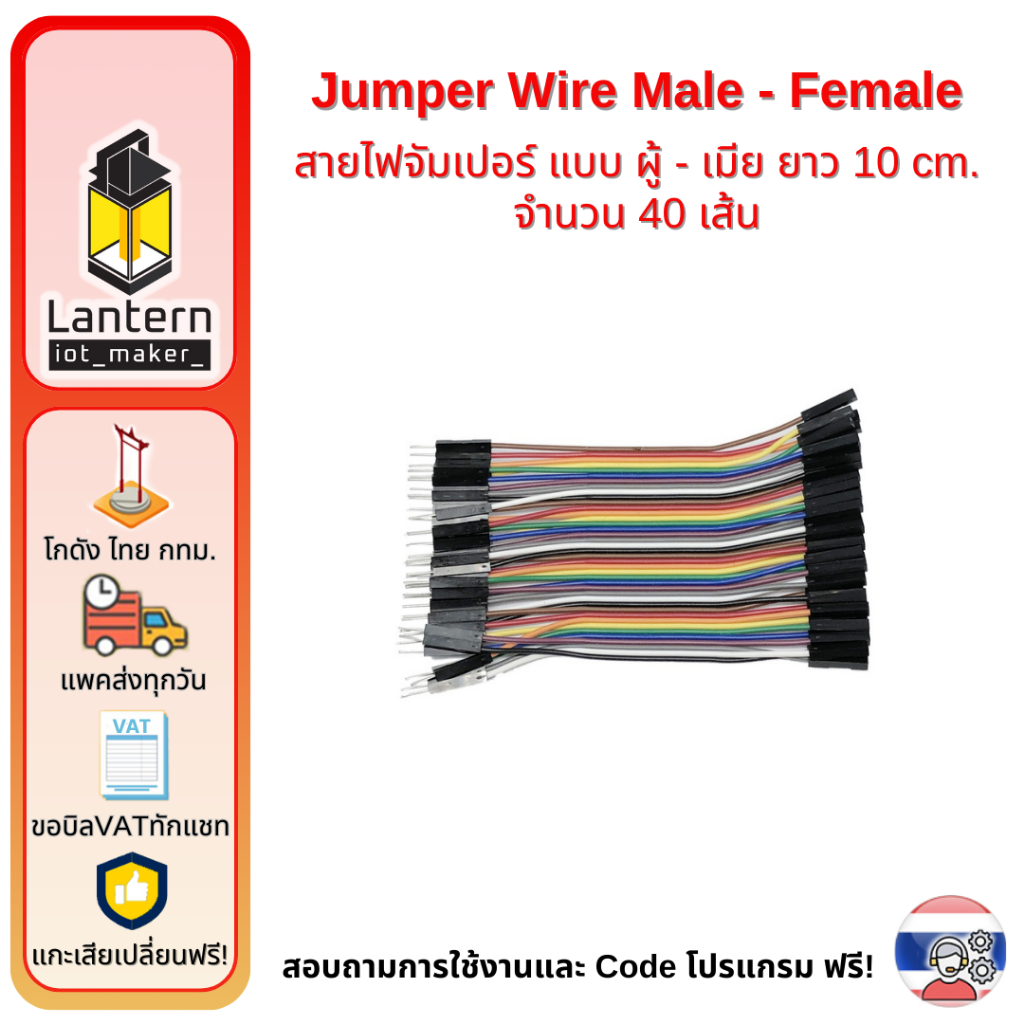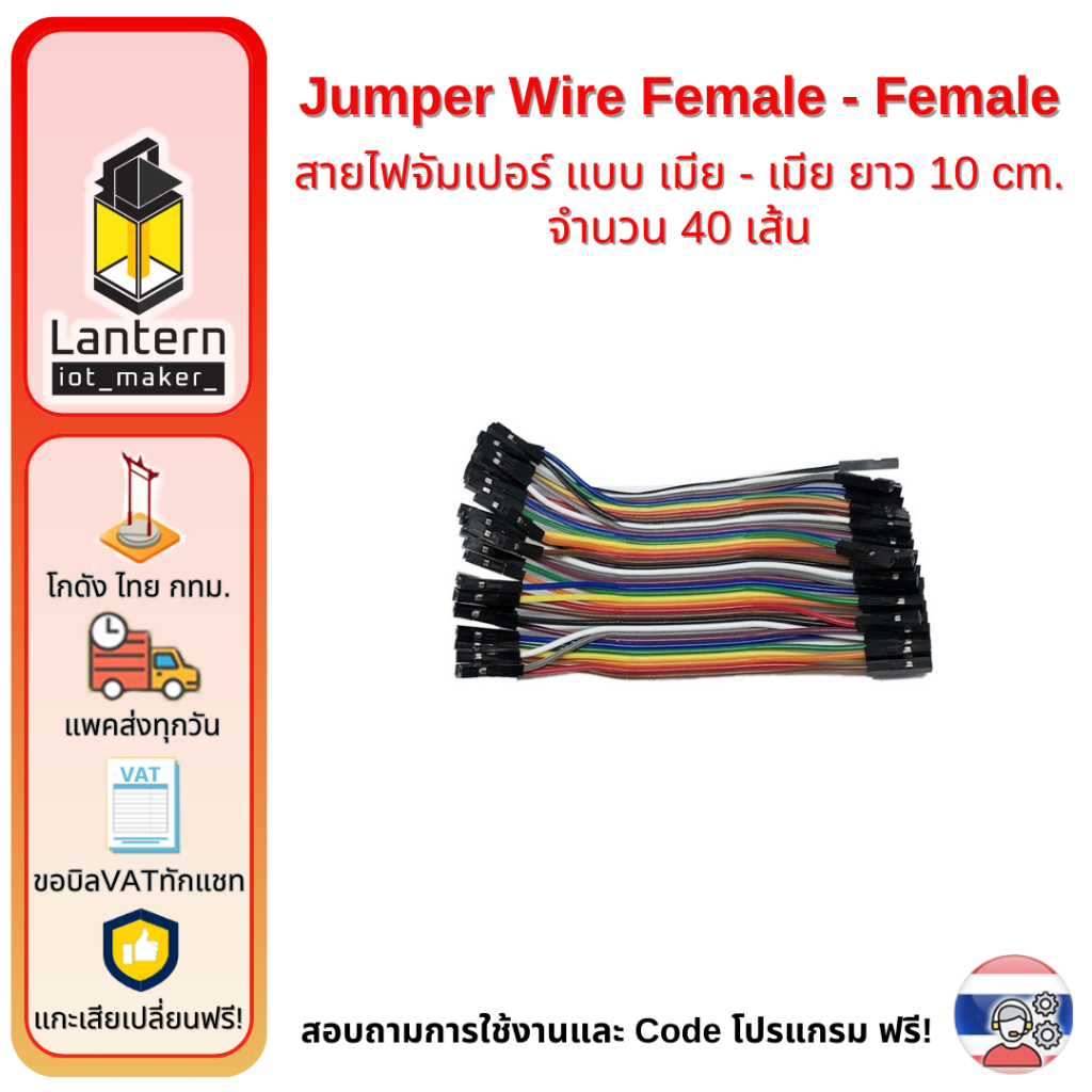 Jumper Wire 10 cm สายไฟจัมเปอร์ 40 เส้น M-M M-F F-F ผ-ผ ผ-ม ม-ม ใช้เสียบทดลองวงจร
