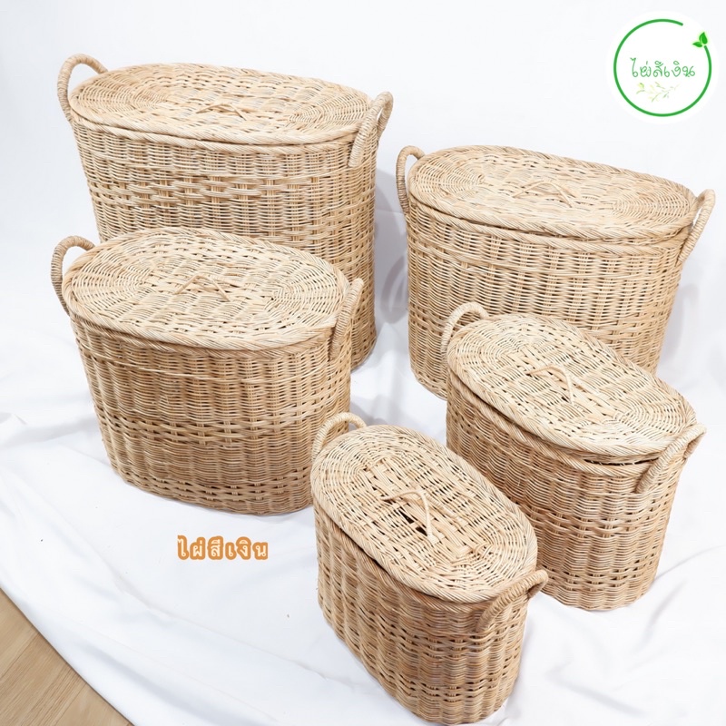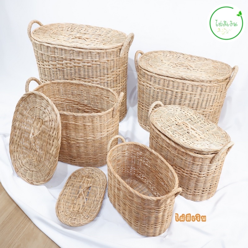 ตะกร้า ตะกร้าหวาย รุ่นพิเศษ ทรงรี มีให้เลือก5ขนาด พร้อมส่ง