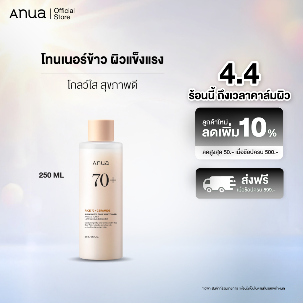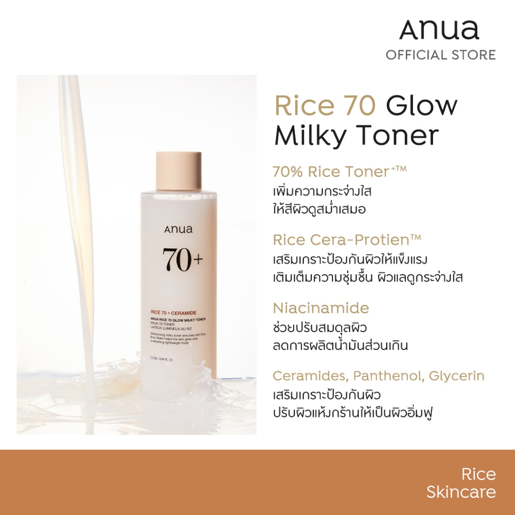 Anua Rice 70 Glow Milky Toner อานัว โทนเนอร์ข้าว เนื้อน้ำนม ผิวโกลว์กระจ่างใส ผิวกลาสสกิ น ผิวนุ่มชุ่มชื้น แข็งแรง 250ml