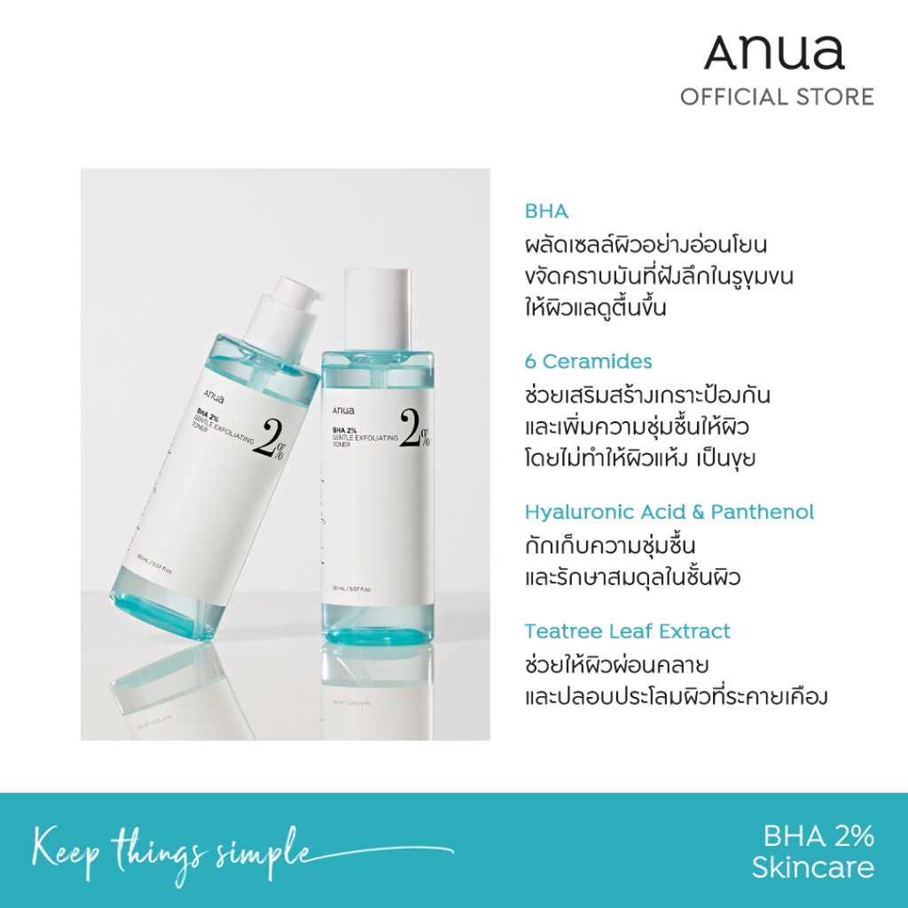 Anua BHA 2% Gentle Exfoliating Toner อานัว โทนเนอร์ผลัดเซลล์ผิวสูตรอ่อนโยน กระชับรูขุมขน ลดส ิว คุมมัน ปลอบประโลมผิว150ml