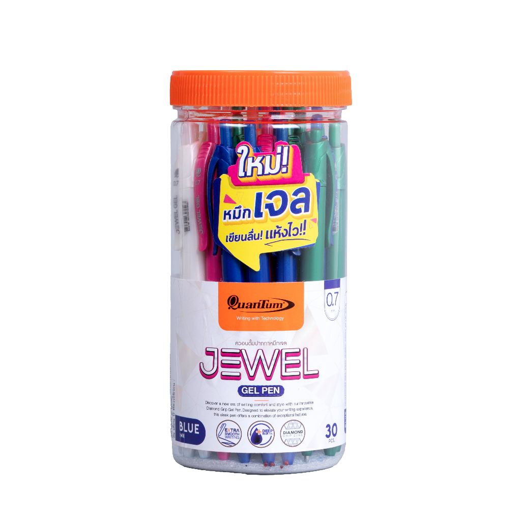 (ยกกระปุก/30ด้าม) ปากกา ปาก กาเจล หัว 0.7mm. Quantum Jewel ควอนตั้ม จีเวล หมึกน้ำเงิน คละสีด้าม