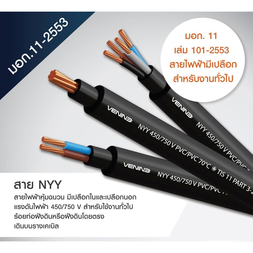 สายไฟ ทองแดง เกลียว7เส้น สายไฟหุ้มฉนวน 3 ชั้น NYY 1x10 450/750V สายไฟเมน/หลักของบ้านsf ป้องกันความชี้น ฝังดินโดยตรง