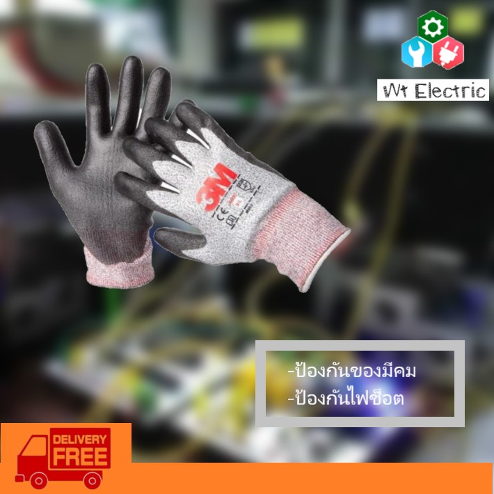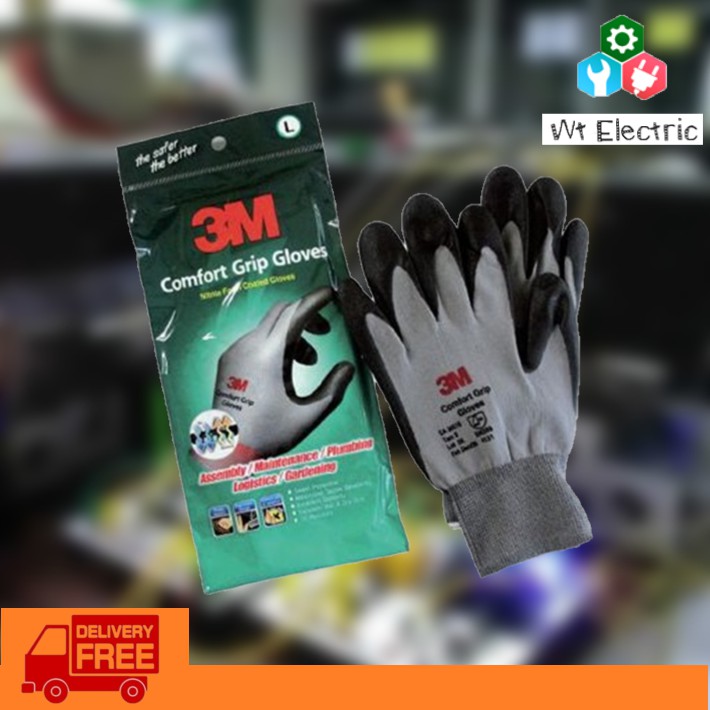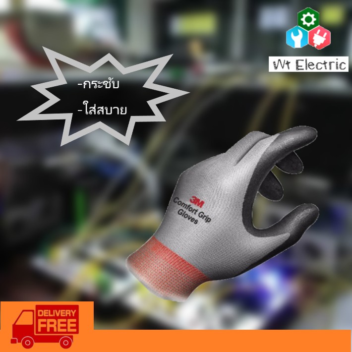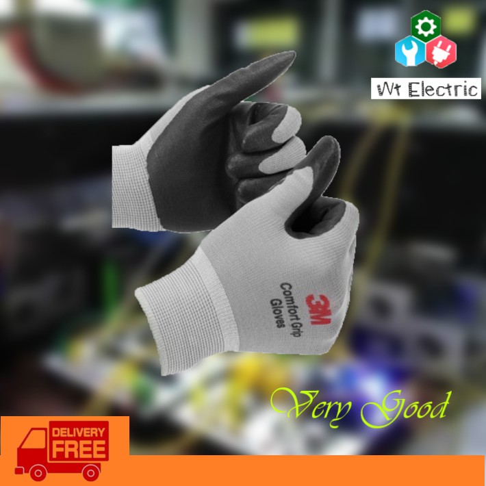 ถุงมือไนลอน ถุงมือไฟฟ้า 3M เคลือบด้วยสารไนไตร สีเทา Comfort Grip Gloves ถุงมือป้องกันไฟฟ้า