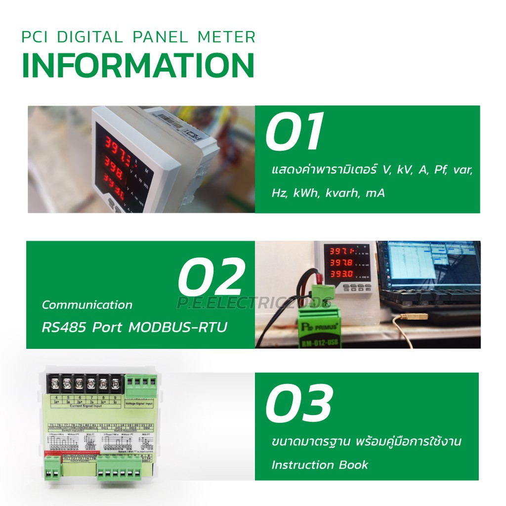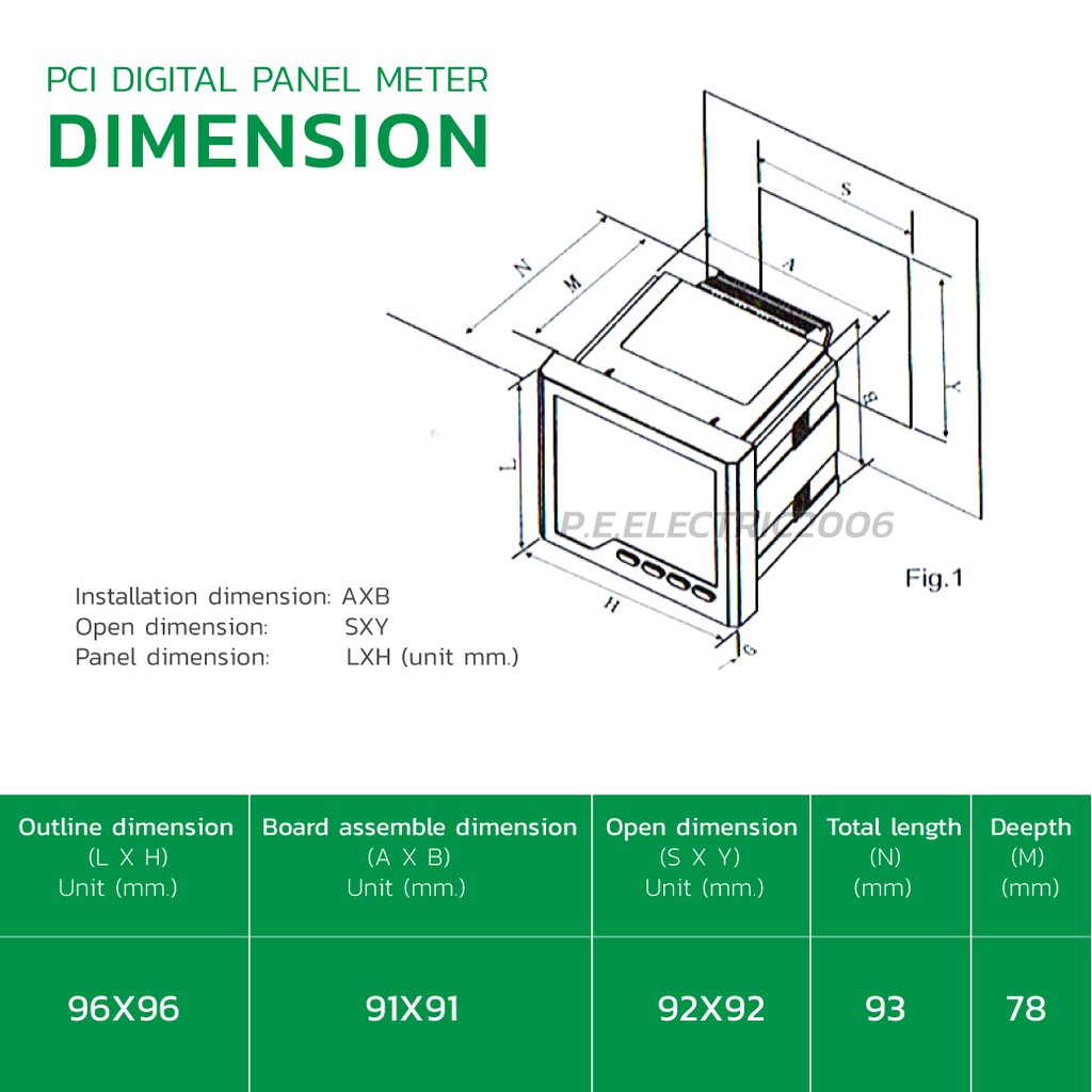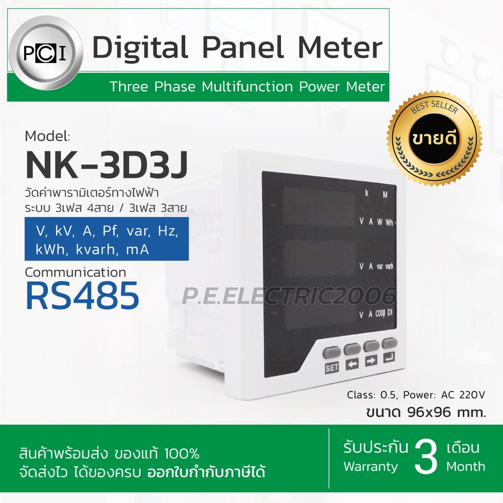 มัลติฟังก์ชันพาวเวอร์มิเตอร์ ดิจิตอลพาเนลมิเตอร์ Digital Panel Meter ยี่ห้อ PCI รุ่น NK-3D3J 96x96mm.