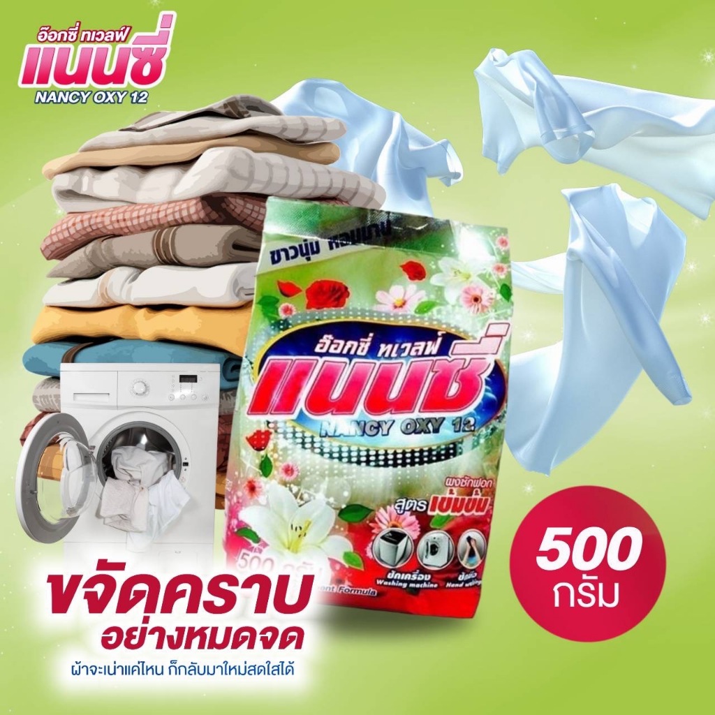 แนนซี ผงซักฟอก แนนซี่ อ๊อกซี่ ทเวลฟ์ ผงซักฟอกแนนซี่ ซักเครื่อง ซักมือ 1 ถุง
