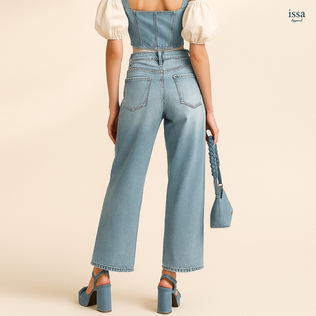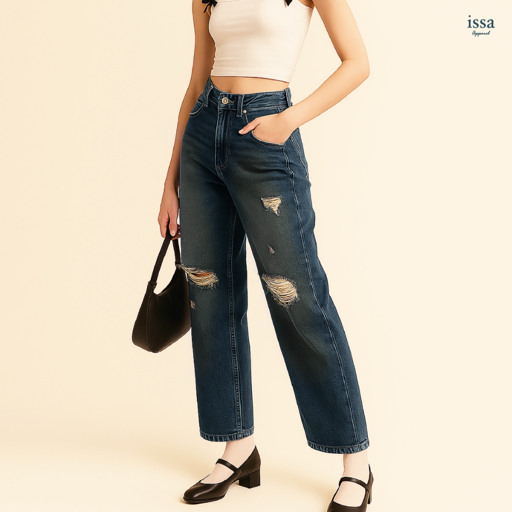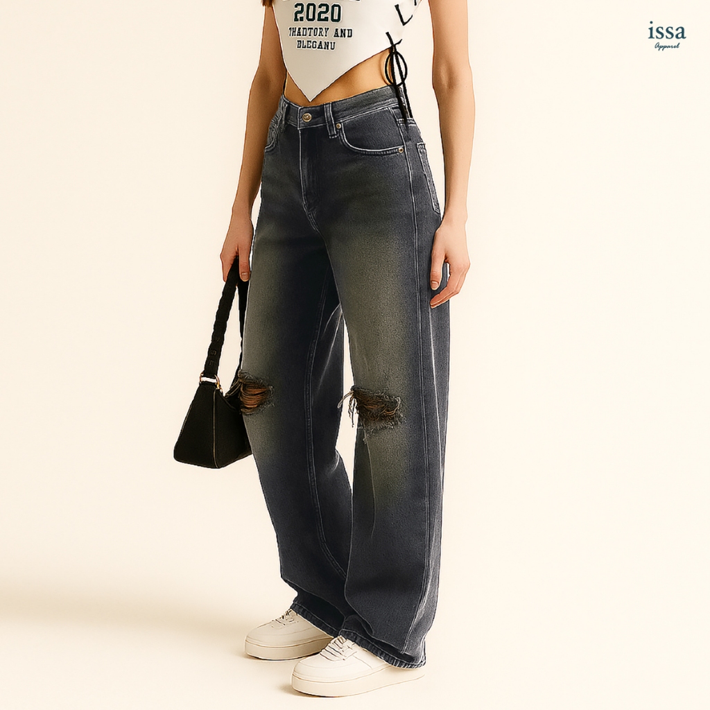 Jasmin Wide jeans กางเกงยีนส์กระบอกใหญ่ดีเทลขาแต่ง ผ้ายีนส์คอตตอนเนื้อดี มีน้ำหนักพอดี ไม่บาง ไม่หนาเกินไป ให้ความรู้สึก