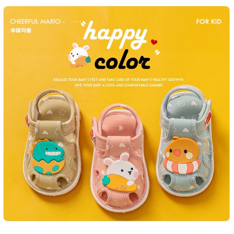 รองเท้าเด็กหัดเดิน หน้าสัตว์ มีเสียง สีสดใส พื้นยางกันลื่น รัดข้อเท้า Toddler Barking Sandals