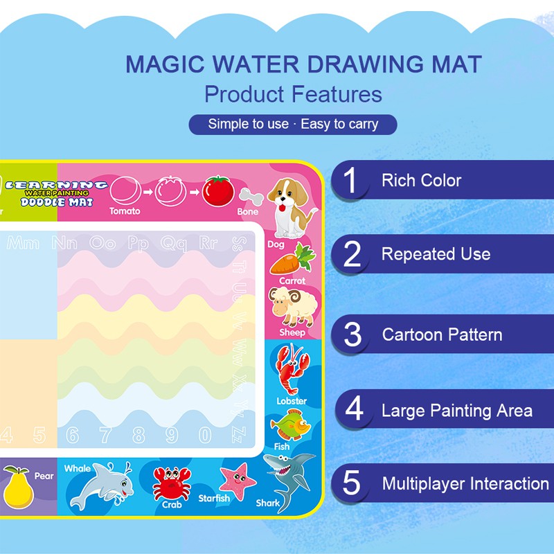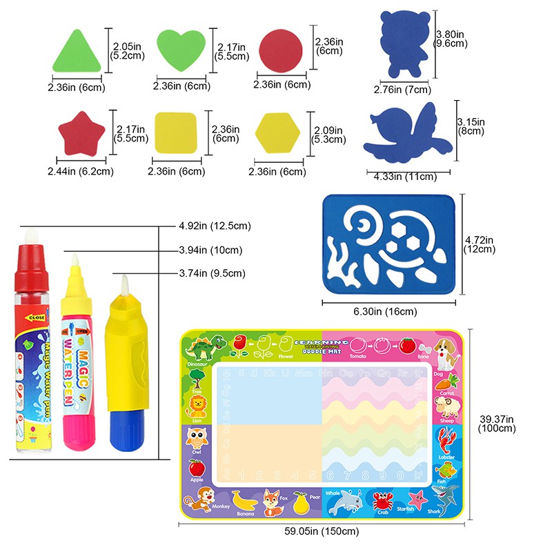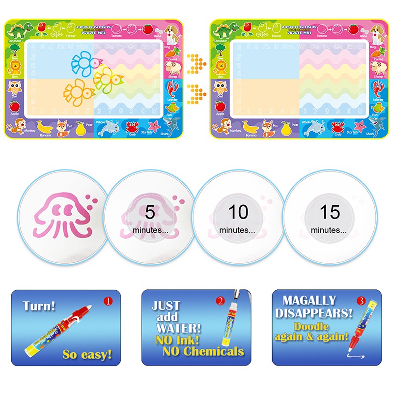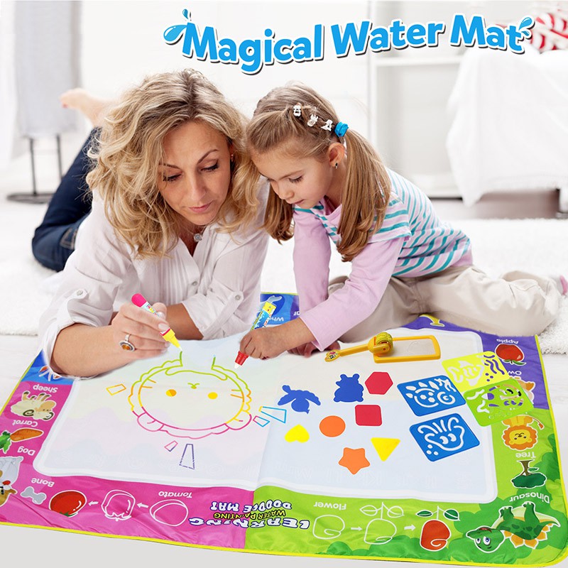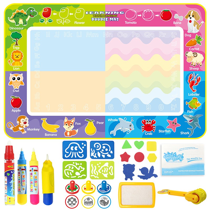 100x150cm Oversized Water Drawing Mat Toy Doodle Mat Kids Painting Board with 3 Magic Pens & Brush & Stamp & Water Seal