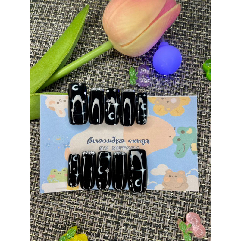 เล็บปลอมงานยาวสีดำสีเจลแท้ทุกชุด ฟรีกาว+ตะไบ