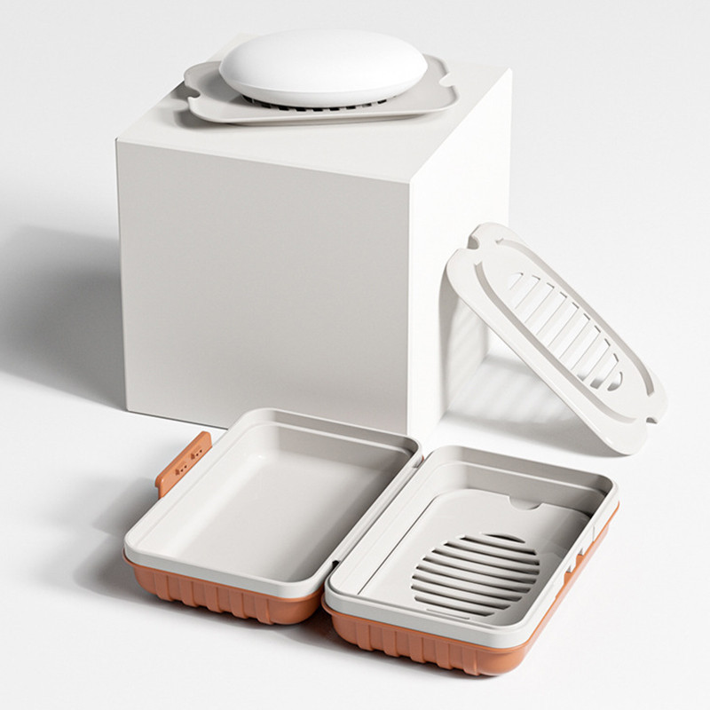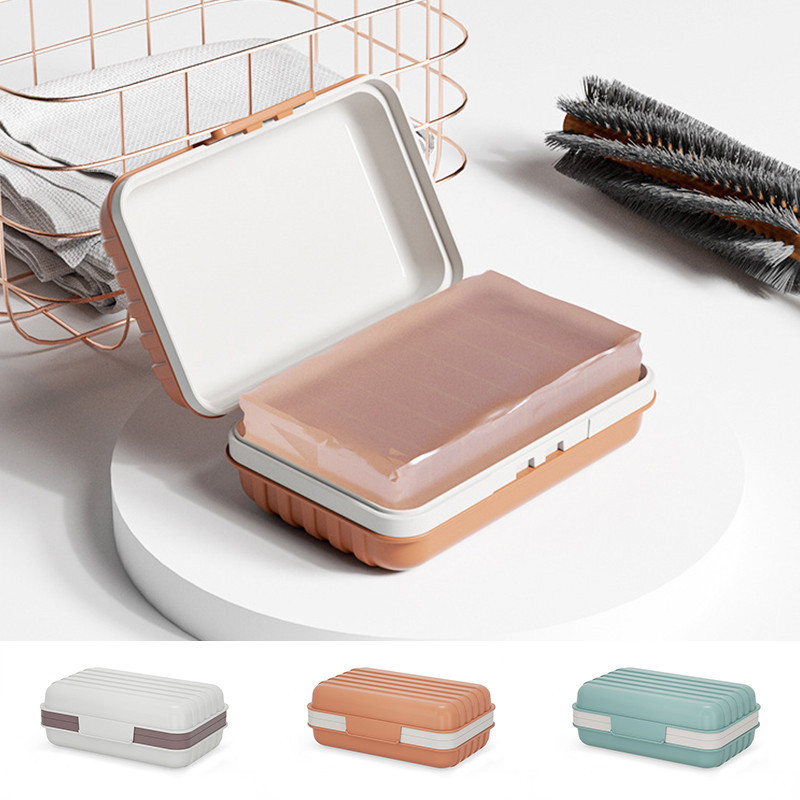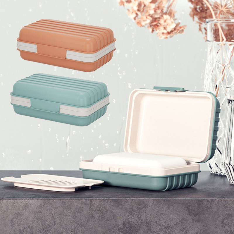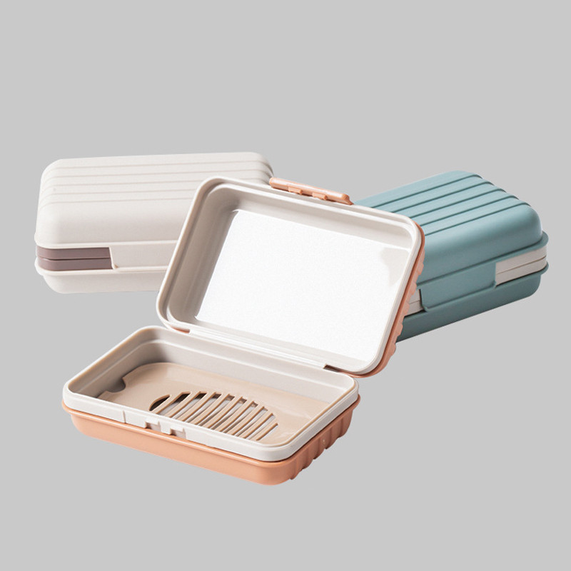 จานสบู่พลาสติก แบบพกพา พร้อมฝาปิด ป้องกันการรั่วไหล ของใช้ในบ้าน สําหรับห้องน้ํา