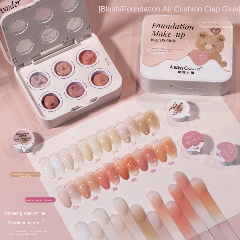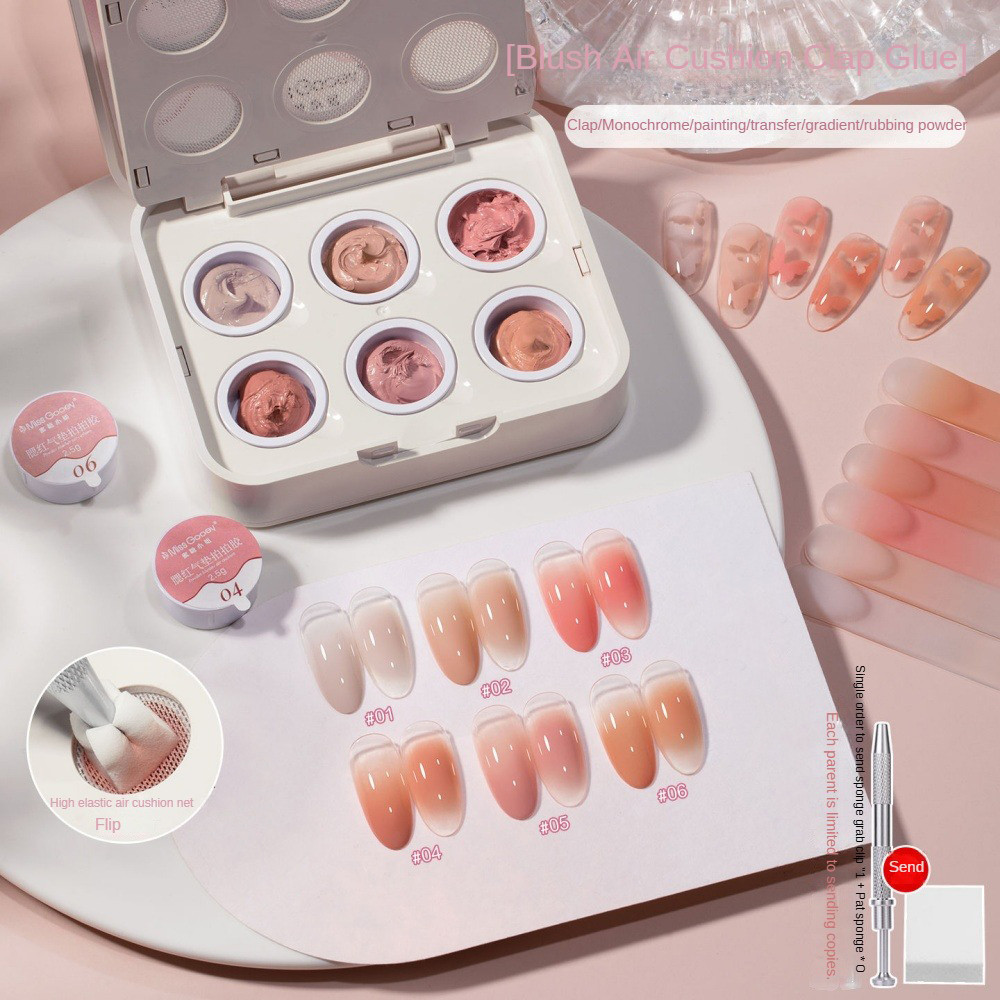 เจลทาเล็บ Miss Gooey 6 Grids Air Cushion Pat Pat Nail Gel Gradient Blush Concealer Clapping Phototherapy Glue Nail Art Manicure For Nail Shop 2 Designs JOYFEEL