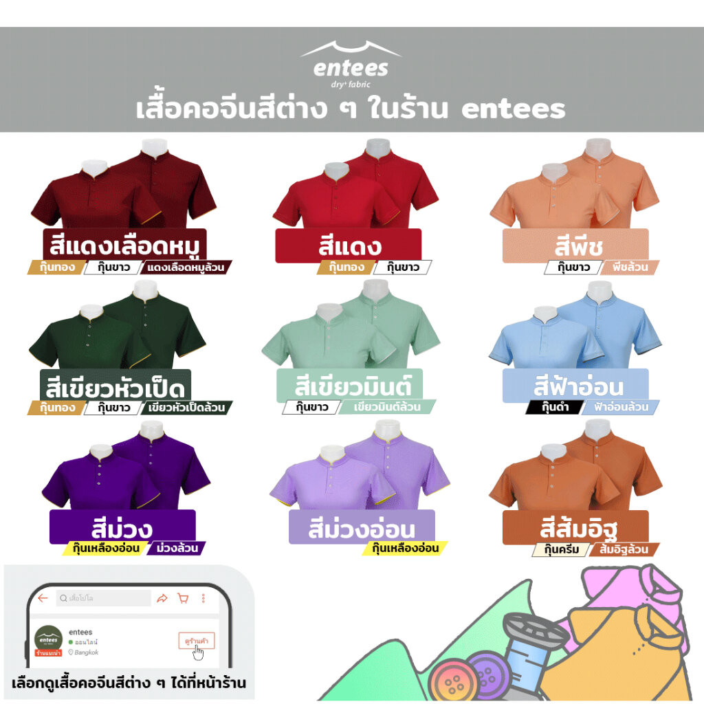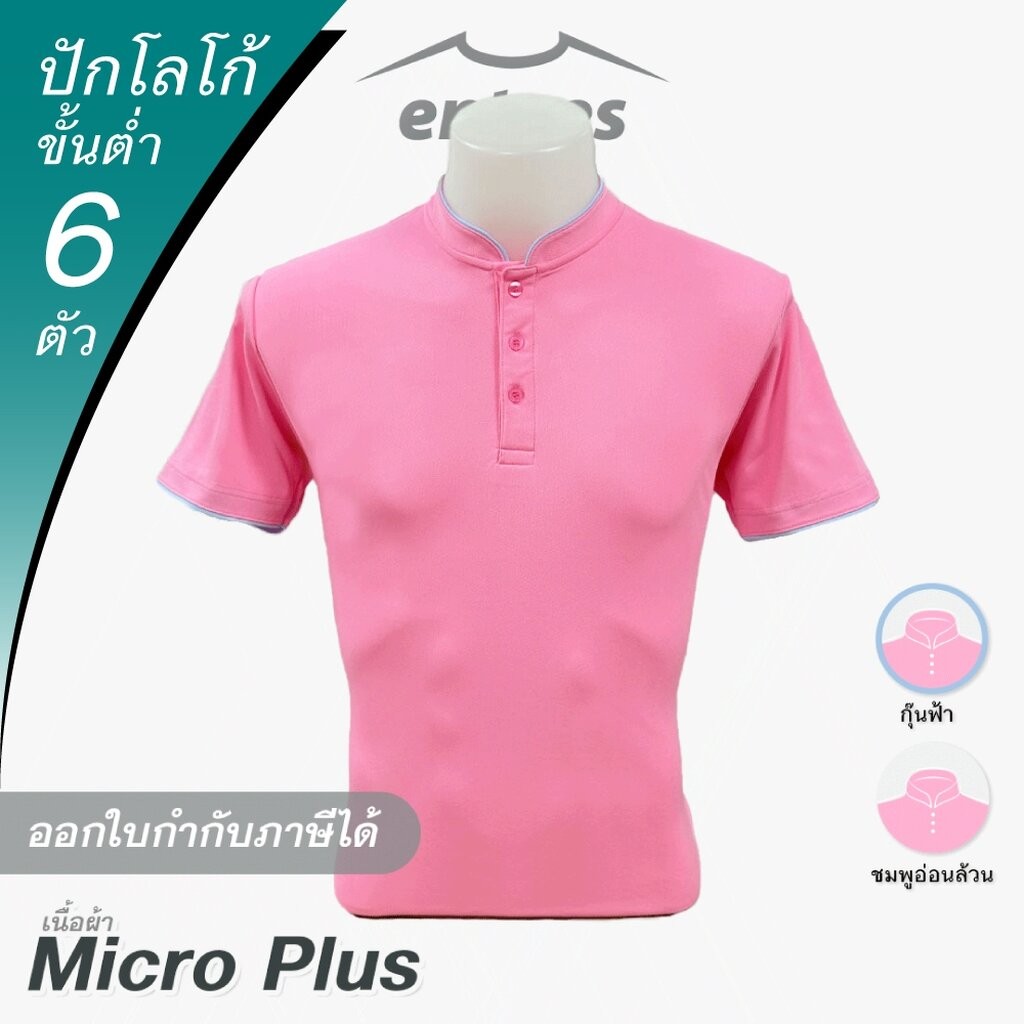เสื้อคอจีน Micro Plus สีชมพูอ่อน สีชมพูพาสเทล สีชมพู