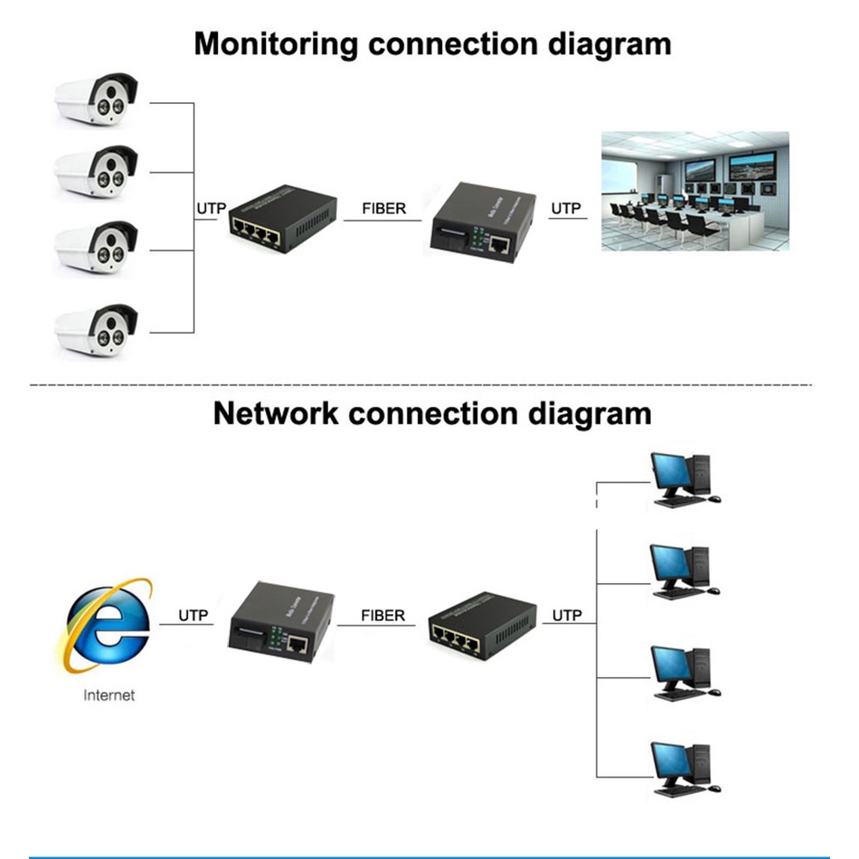 1000Mbps Media Coverter Switch เครื่องรับส่งสัญญาณไฟเบอร์ A/B Gigabit Fiber Optical 1G1E Media Converter Single Mode SC