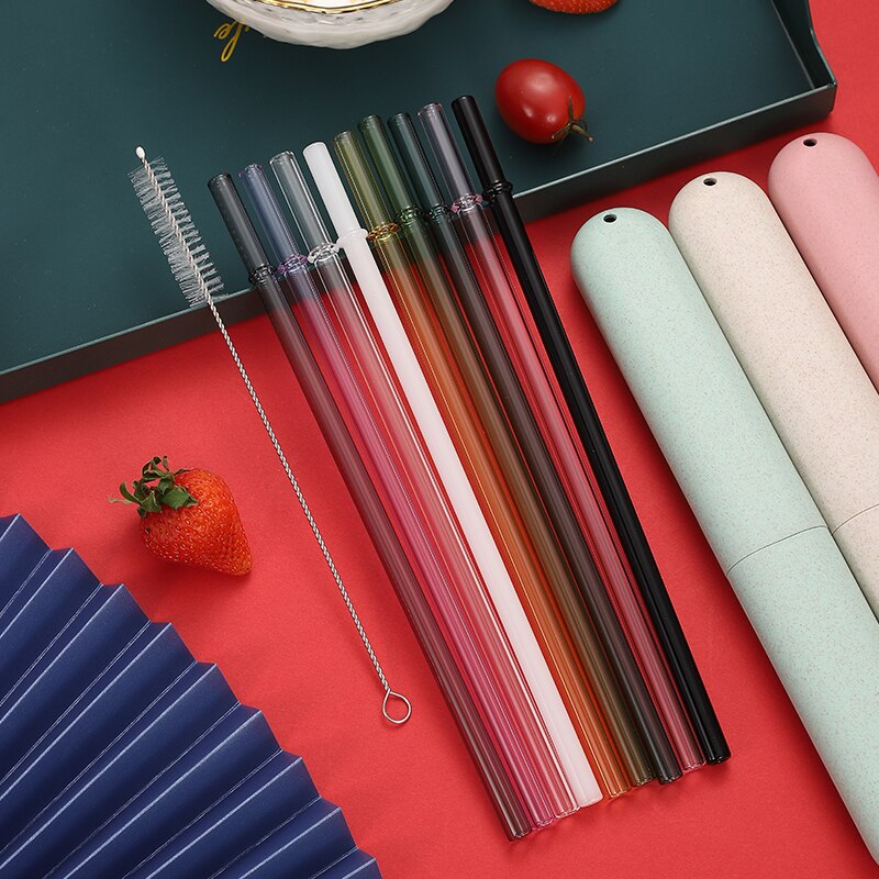 1/2ชิ้นพิเศษวิจิตรโค้งแก้วสตาร์บัคส์ดื่มแก้วหลอดนํามาใช้ใหม่เป็นมิตรกับสิ่งแวดล้อมด้วย1ชิ้นทําความสะอาดแปรงและกรณี