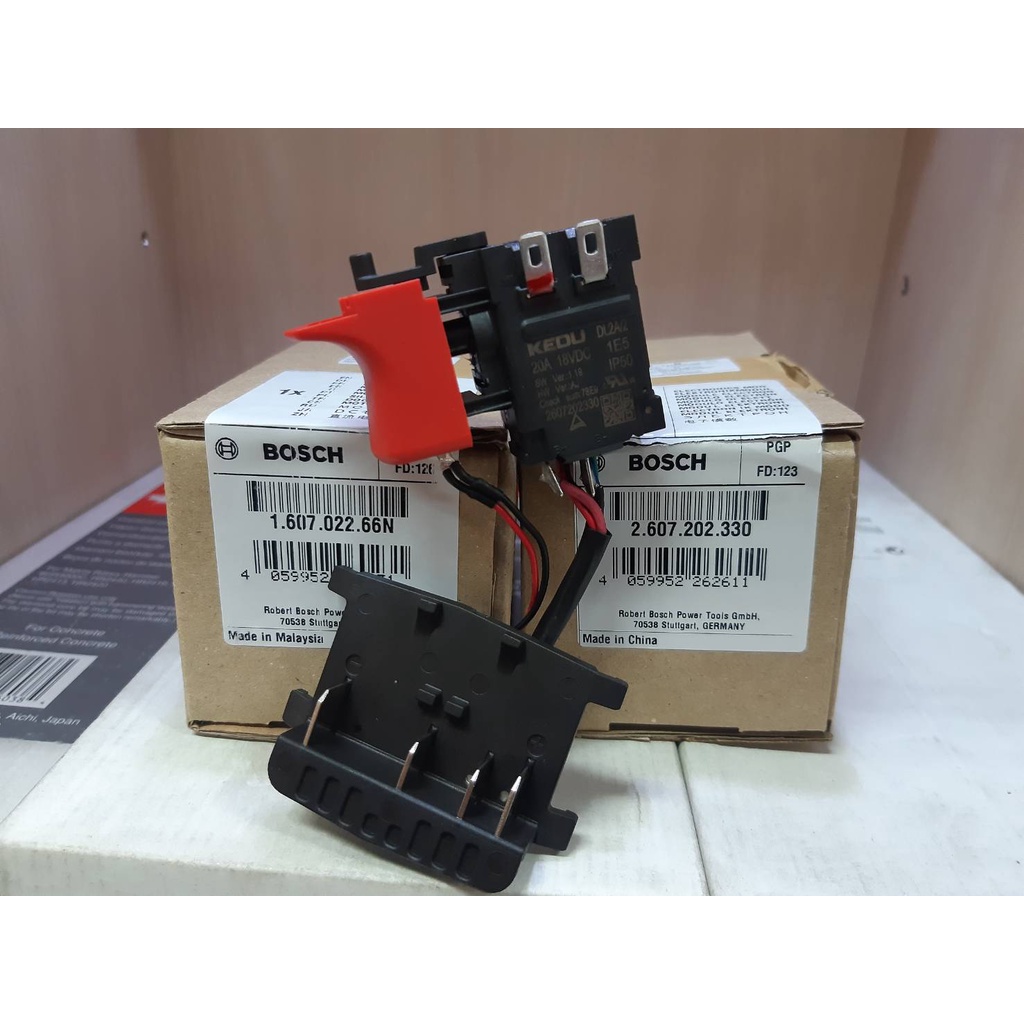 Bosch switch part no. 2.607.202.330 ชุดสวิตซ์ สว่านไร้สาย รุ่น GSB180-LI ใช้ประกอบงานซ่อมอะไหล่แท้