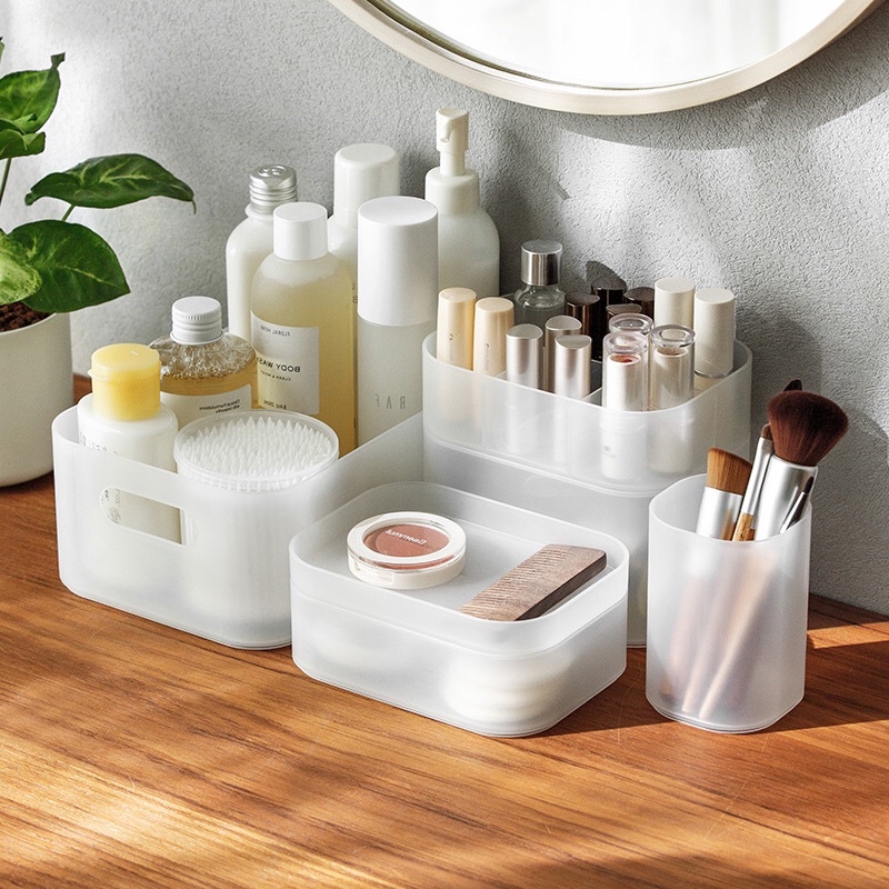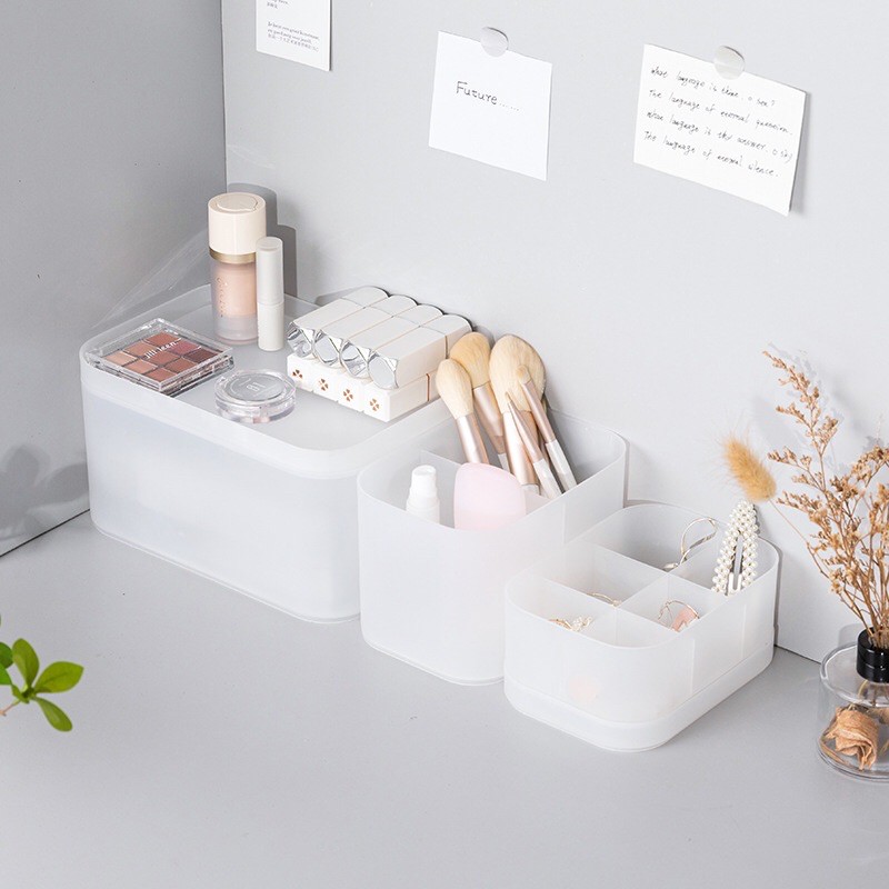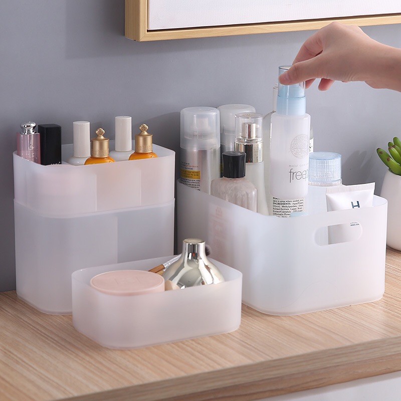(แถมสติกเกอร์ฉลาก) กล่องใส่ของพร้อมฝาปิด กล่องพลาสติกใส่ของ กล่องจัดระเบียบ เก็บเครื่องสำอาง กล่องอเนกประสงค์
