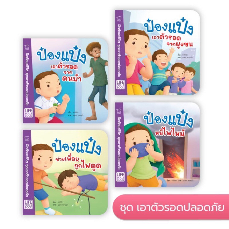 หนังสือนิทาน ป๋องแป๋ง ชุดเอาตัวรอดปลอดภัย เอาตัวรอดจากคนบ้า/เอาตัวรอดจากฝูงชน/หนีไฟใหม้/ช่วยเพื่อนถูกไฟดูด (แยกเล่มได้)