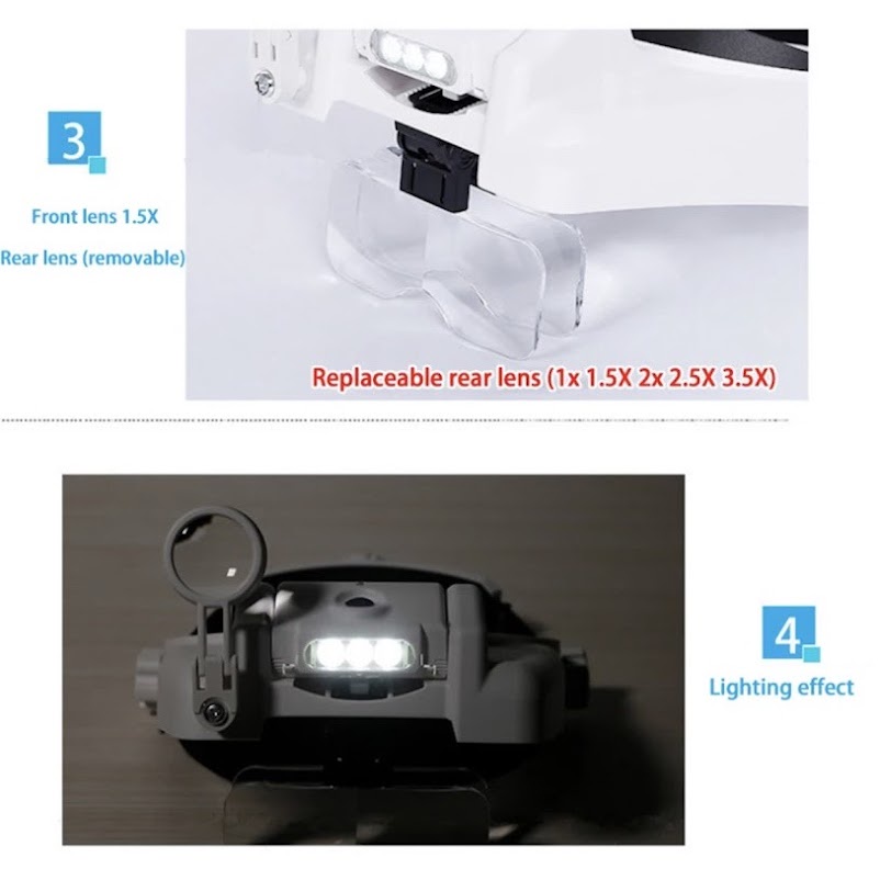 ส่งจากไทย USB ชาร์จได้หัวติดตั้งกล้องส่องทางไกลแว่นตา Loupe แว่นขยาย3LED Illuminated Headband แว่นขยายสำหรับอ่านหนังสือ