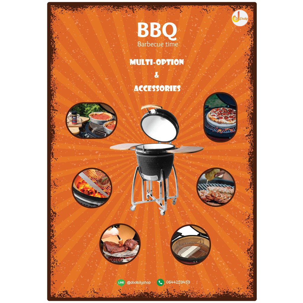 KamadoKin 24"(23.5) นิ้ว เตาปิ้งย่างบาร์บีคิว ทำจากเซรามิกเกรด Premium ควบคุมอุณหภูมิได้
