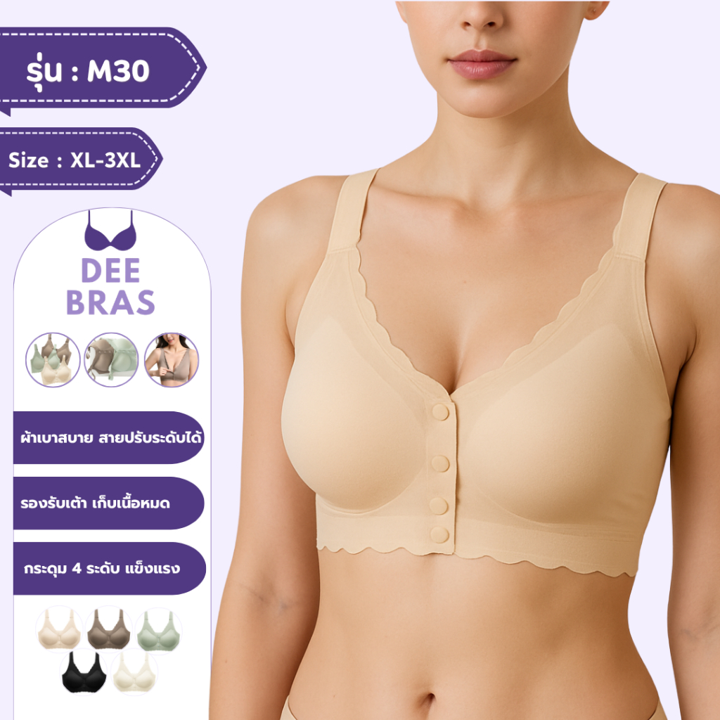 [ไหมน้ำแข็ง] M30 เสื้อในไร้โครง ฟองน้ำกำลังดี ใส่สบาย ระบายอากาศ รุ่นกระดุมหน้า ลดปวดหลังได้ดี เสื้อชั้นใน ชุดชั้นใน