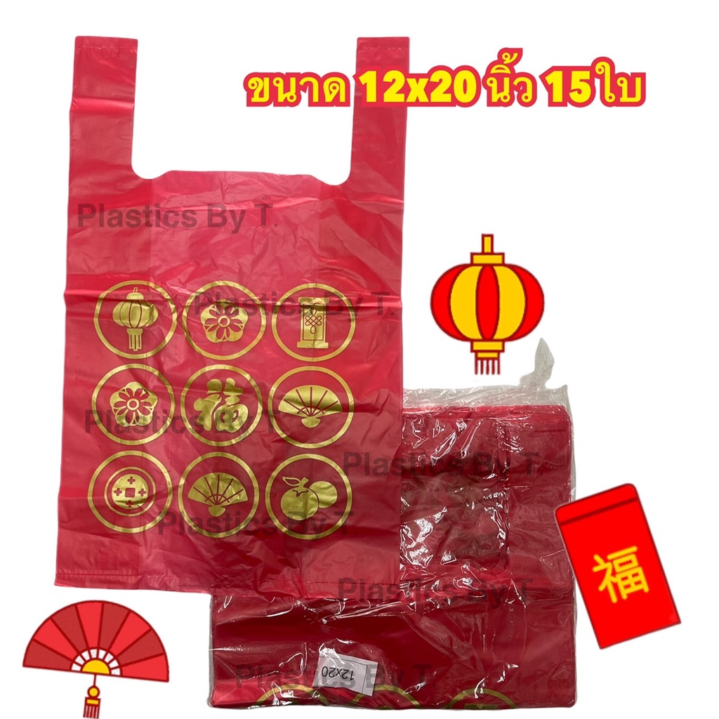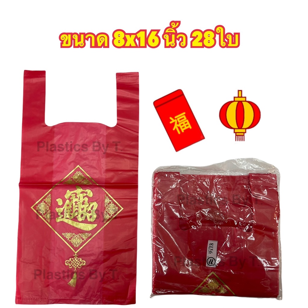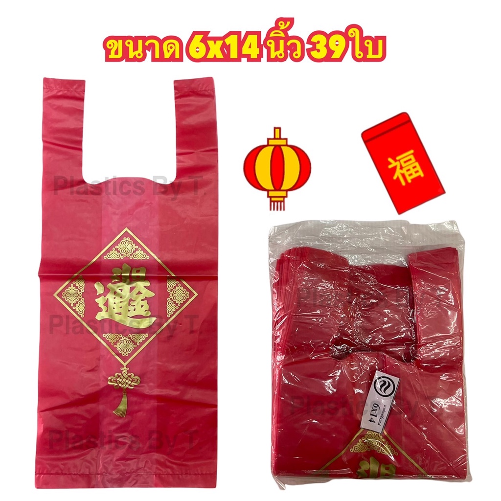 ถุงหิ้วสีแดง ลายจีน ถุงหูหิ้วลายภาษาจีน ใส่ส้มวันตรุษจีน 1 ห่อ