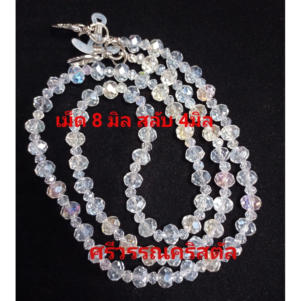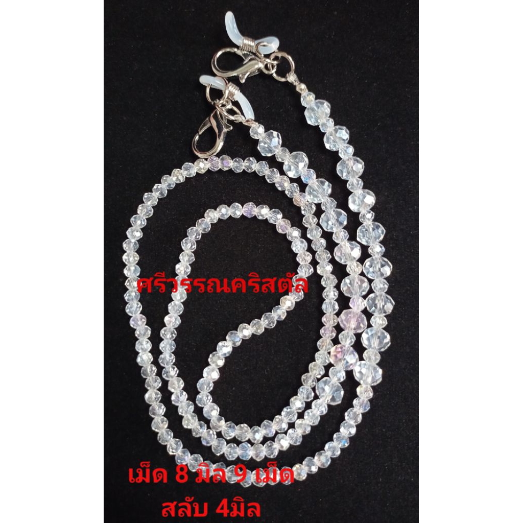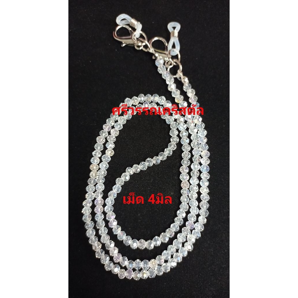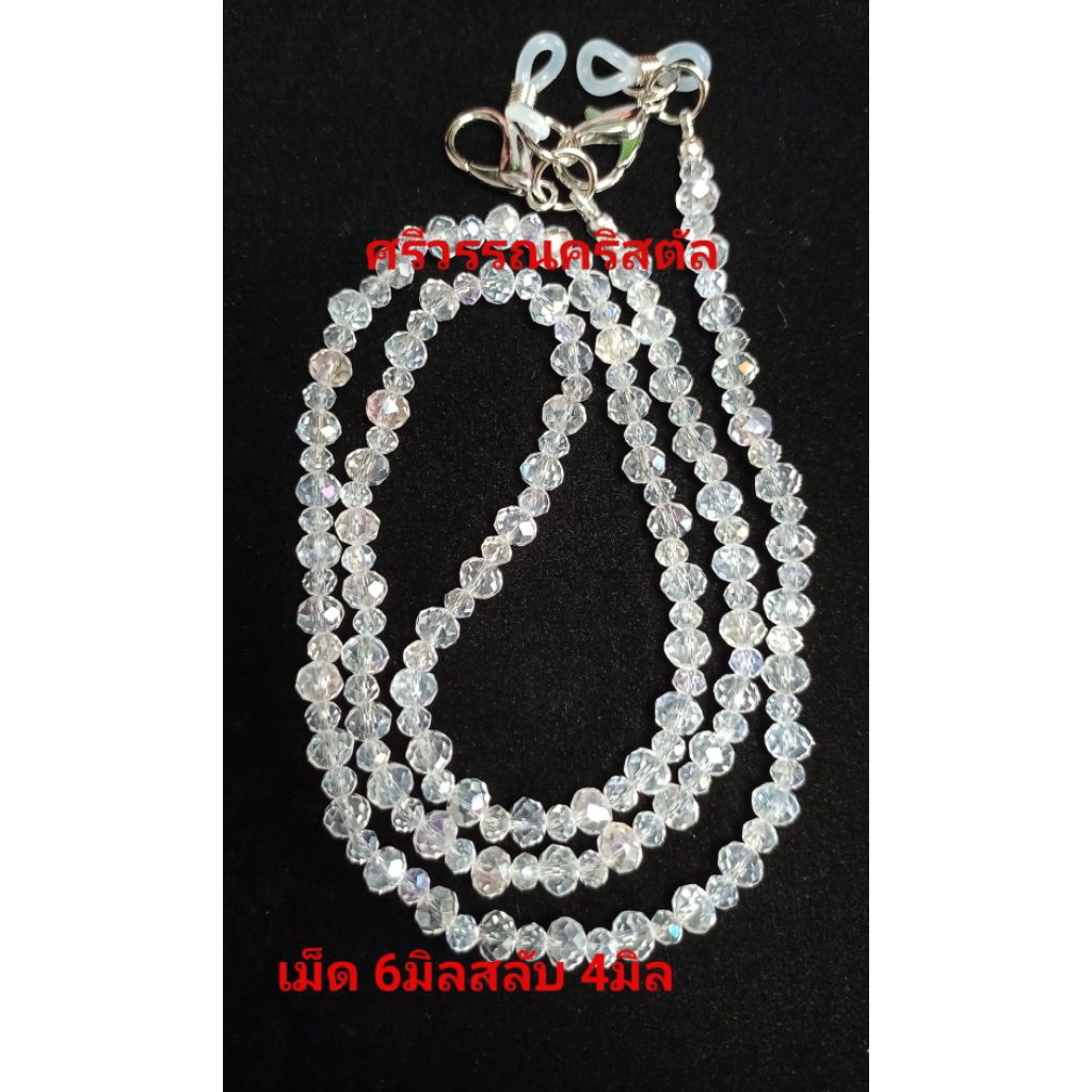 สายคล้องแมสคริสตัลและสายคล้องแว่นตาคริสตัลสีขาวใส