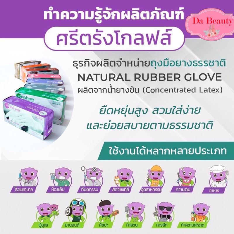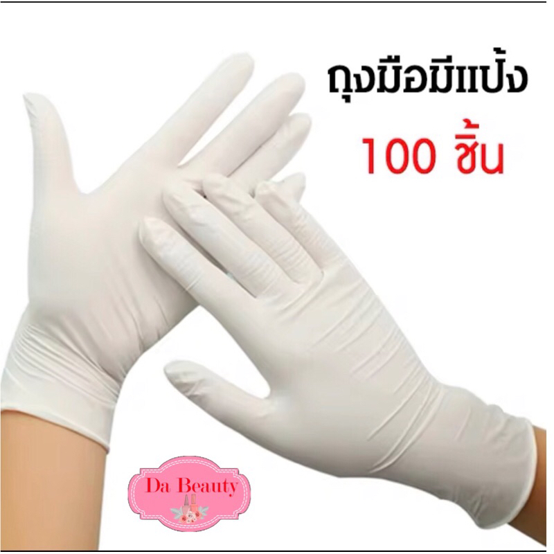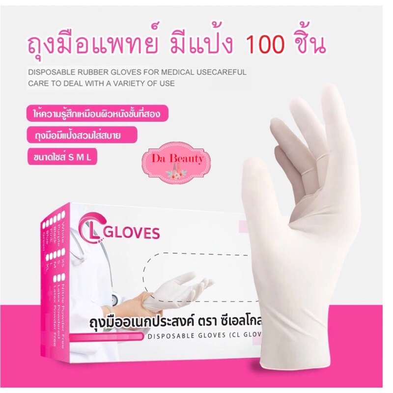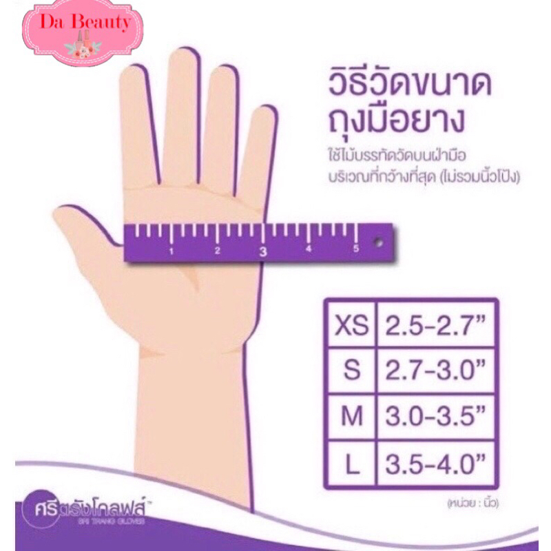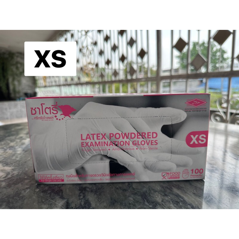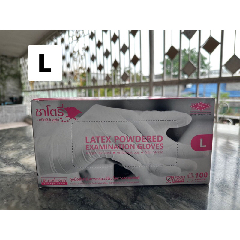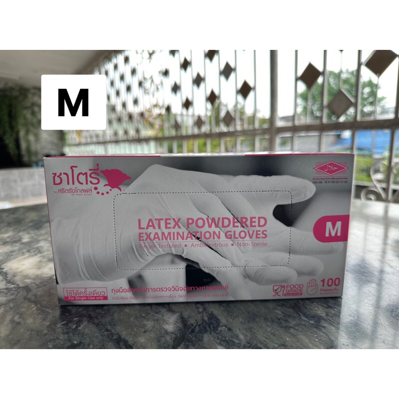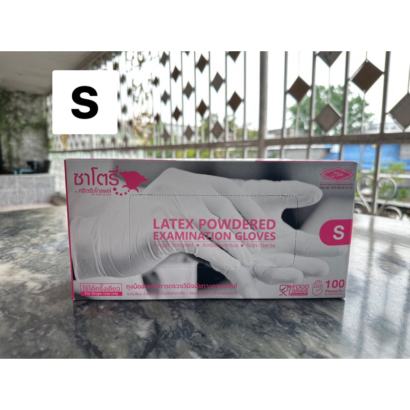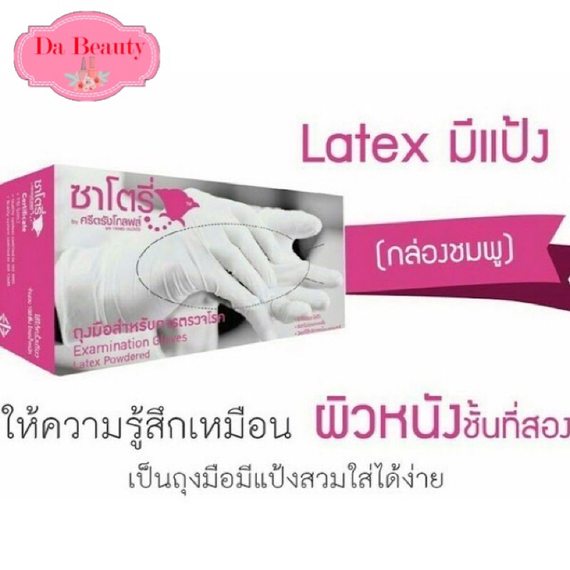 ถุงมือยี่ห้อ ซาโตรี่ SATORY ถุงมือยางศรีตรังมีแป้ง กล่องชมพู 1 กล่องมี 100 ชิ้น (50 คู่)