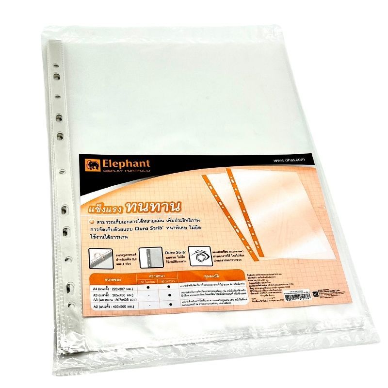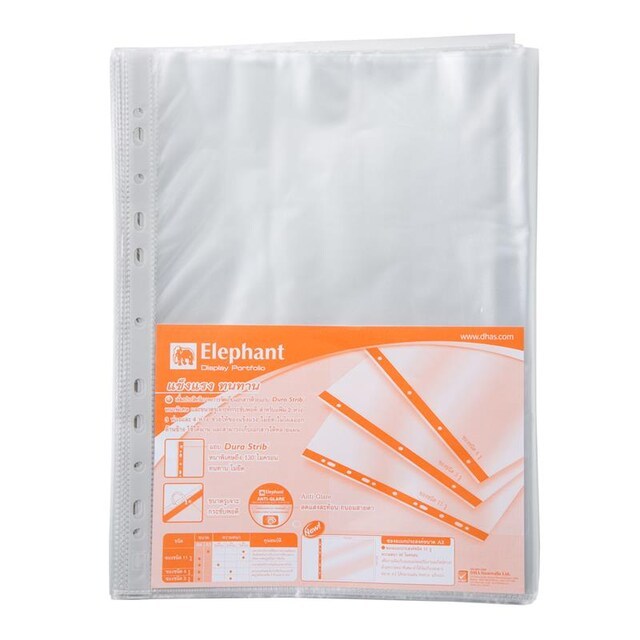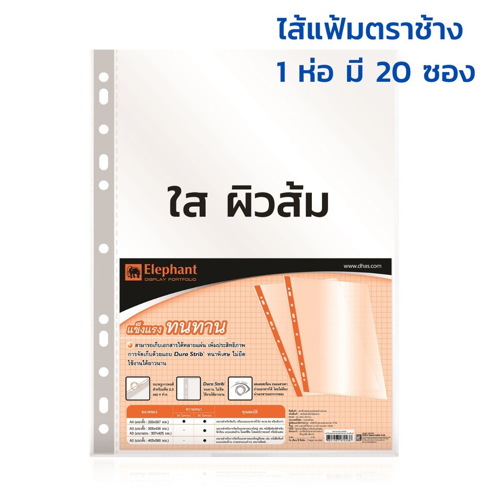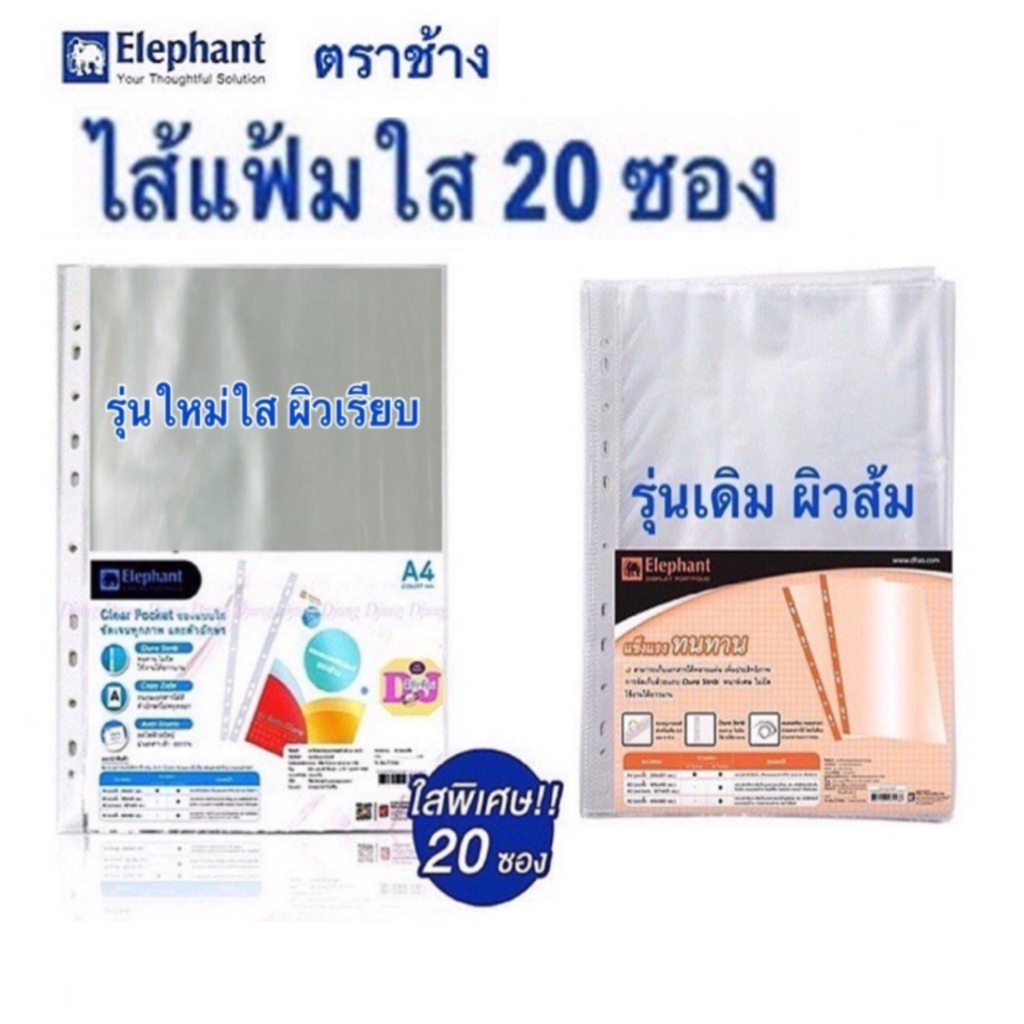 ไส้แฟ้มตราช้าง ซองใสเอนกประสงค์ ซองไส้แฟ้ม 11 รู ขนาด A4 (หนา 0.05 มม.) ห่อละ 20ชิ้น (รุ่นใสผิวเรียบ , รุ่นใสผิวส้ม)