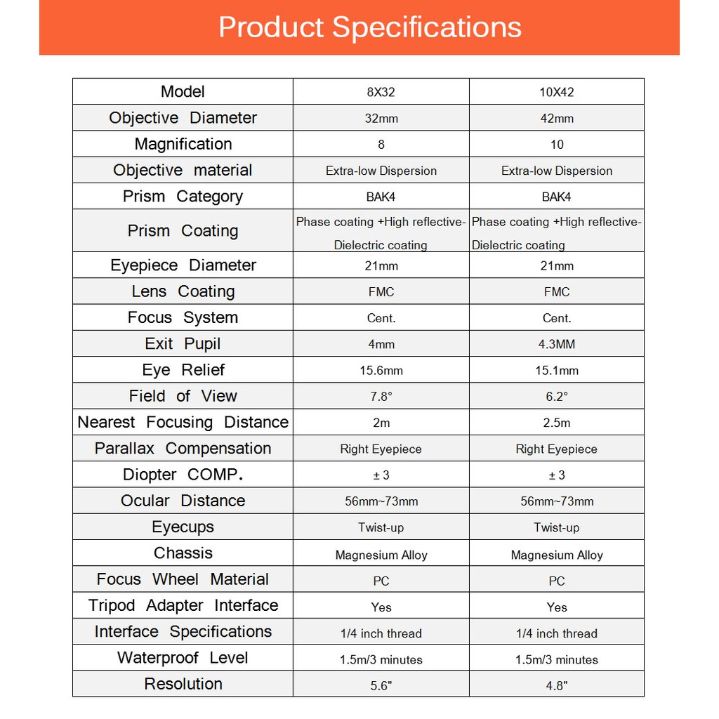 SVBONY SV202 กล้องส่องทางไกลกล้องโทรทรรศน์ ED ปริซึม BAK4 การเคลือบการแก้ไขเฟสที่มีประสิทธิภาพสำหรับการดูนก ดูดาว 8X32/10x42/10x50