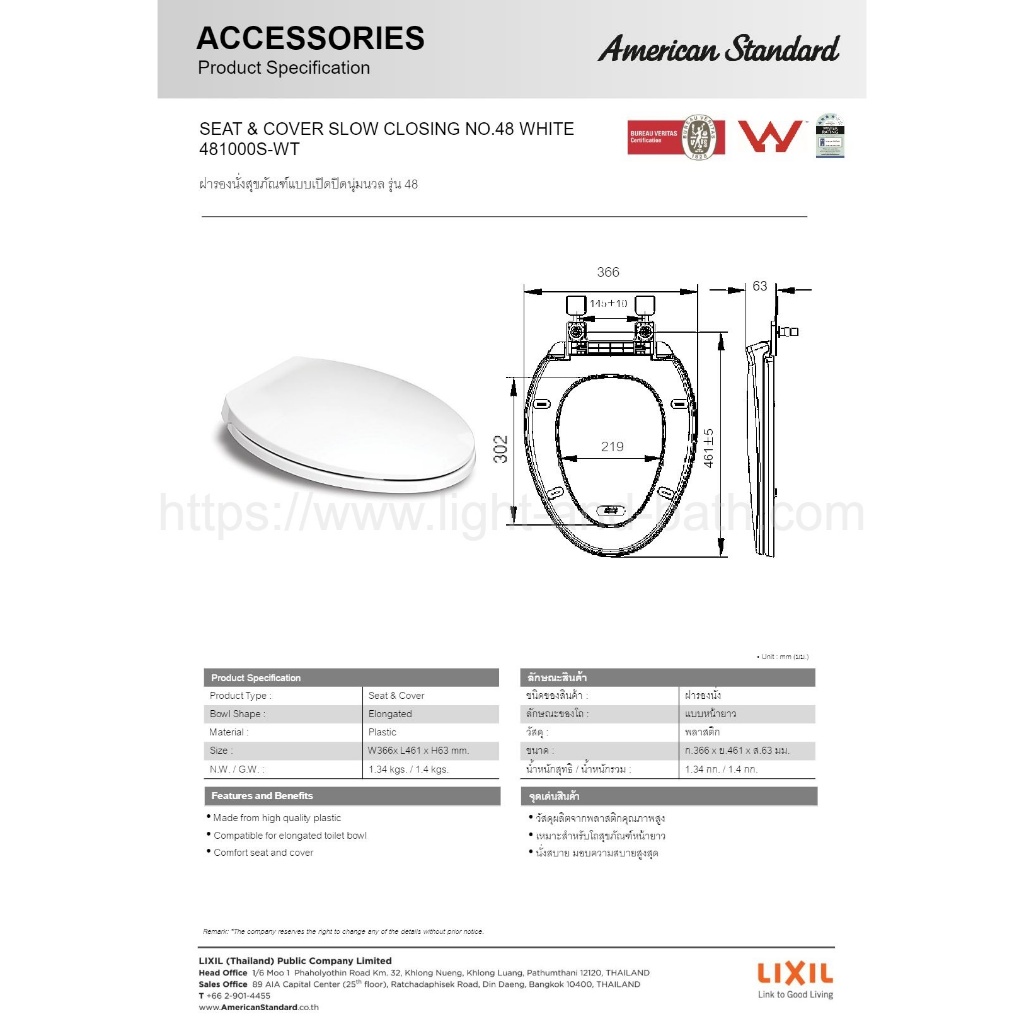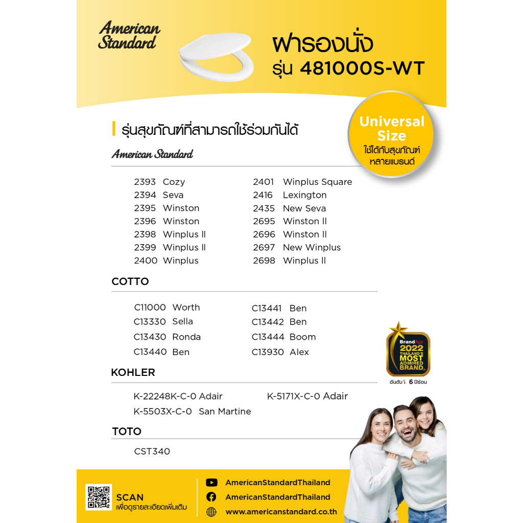 481000S-WT (CL6103M-6D) ฝารองนั่งชักโครก รุ่น 481S