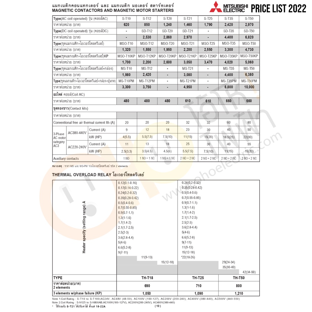 MITSUBISHI ชุดแมกเนติก+โอเวอร์โหลด MSO-T10 ประกอบด้วย S-T10 + TH-T18