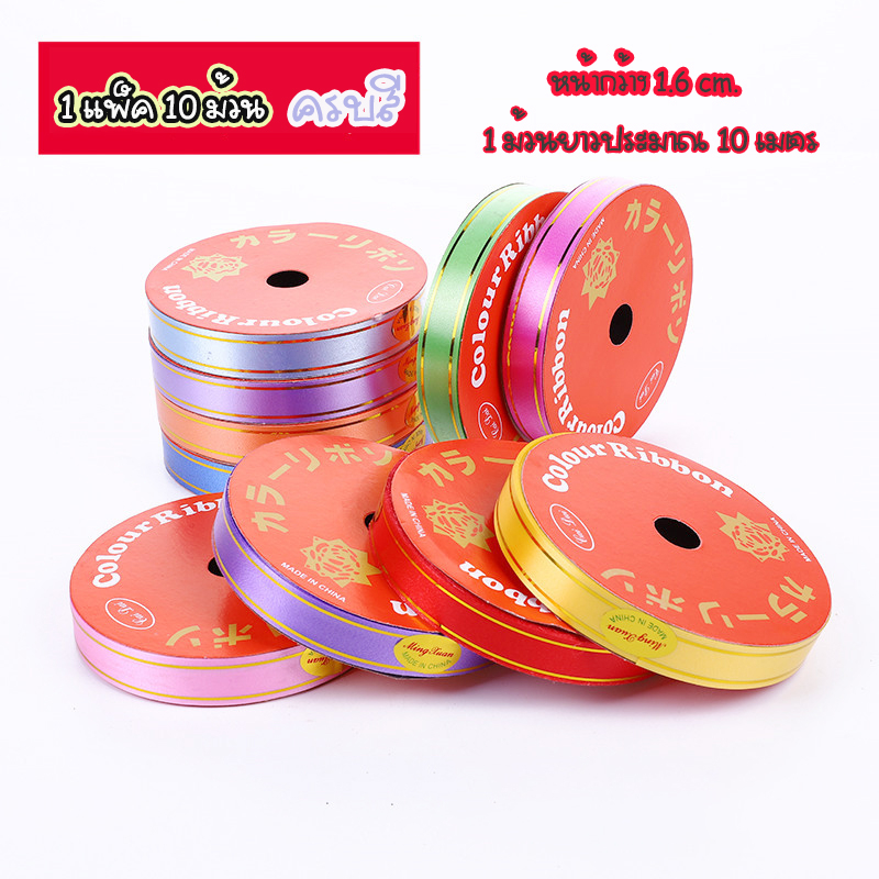 ริบบิ้นขอบทอง แพ็คละ 6-10 ม้วน ริบบิ้น ขายยกแพ็ค คละสี ริบบิ้นพับเหรียญ เหรียญโปรยทาน พร้อมส่ง