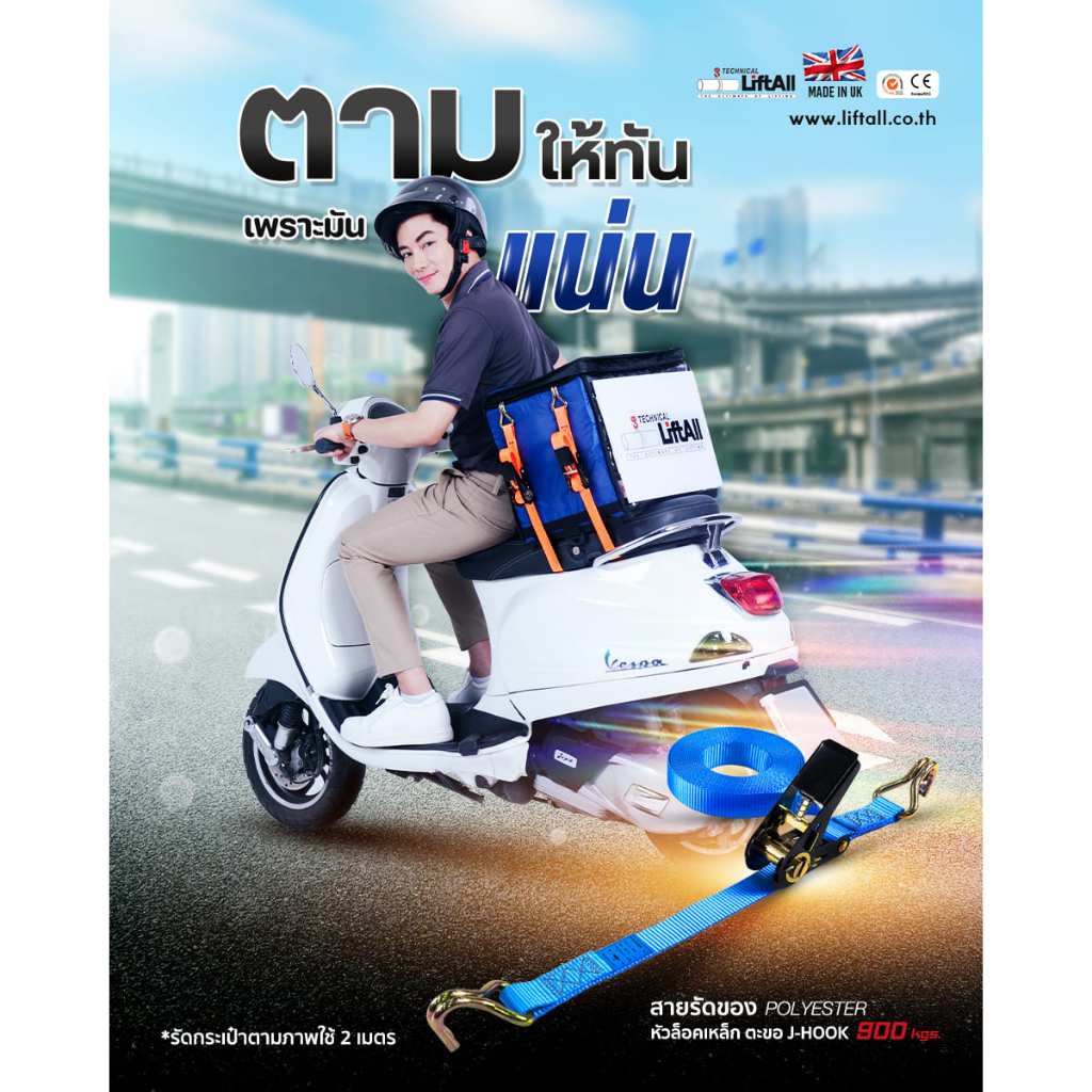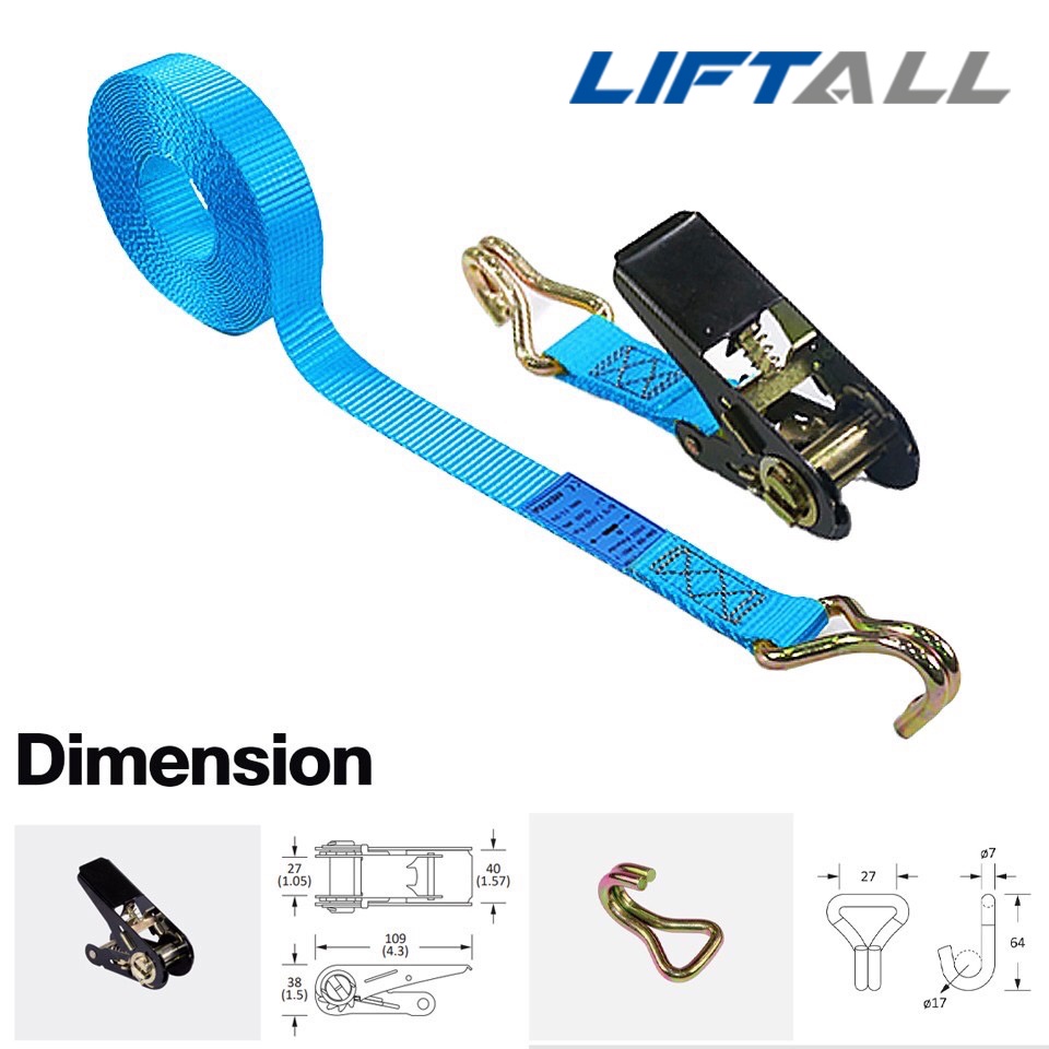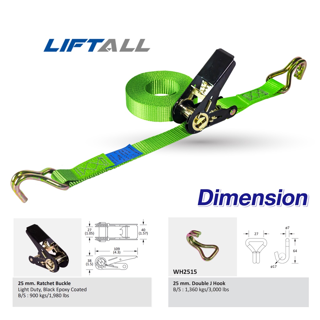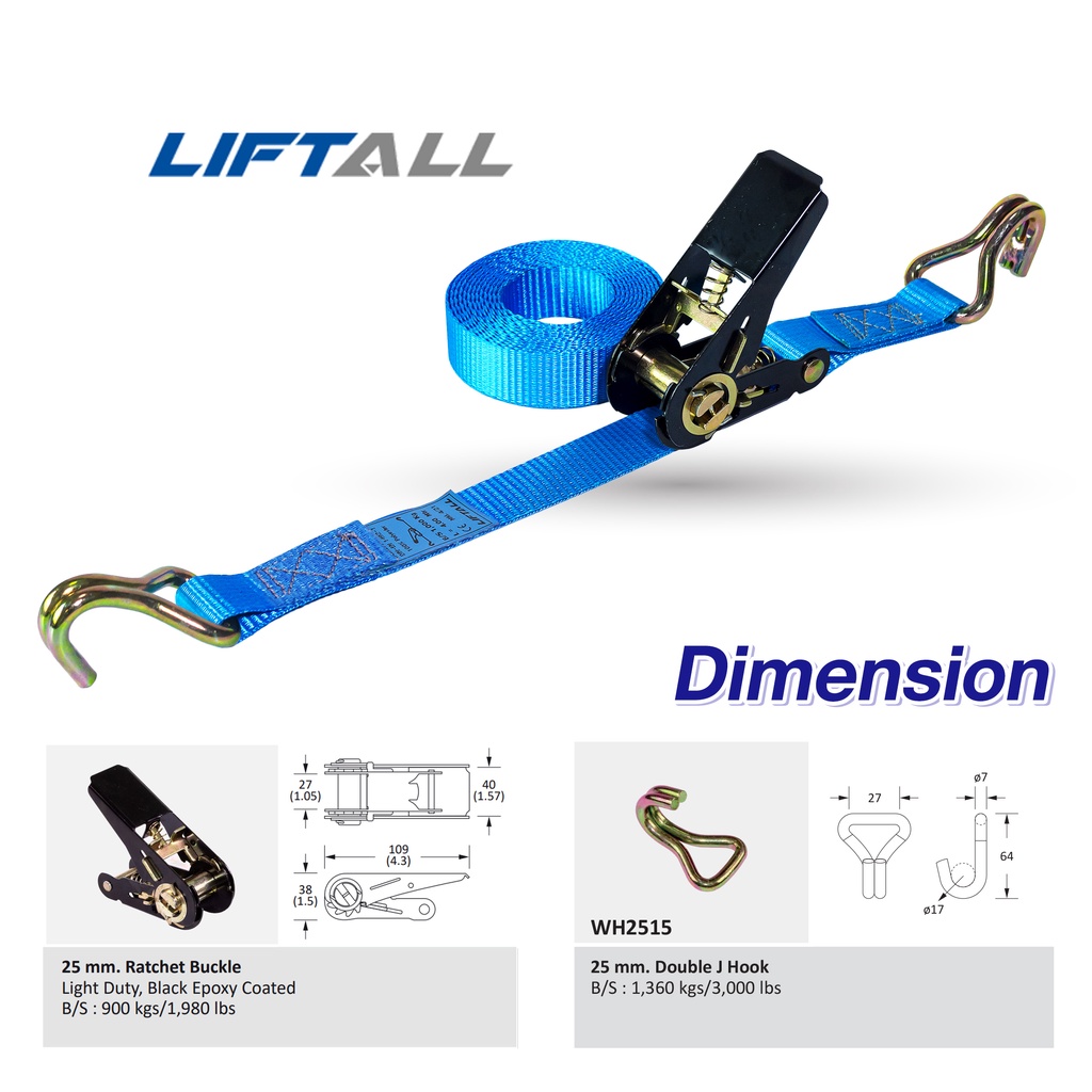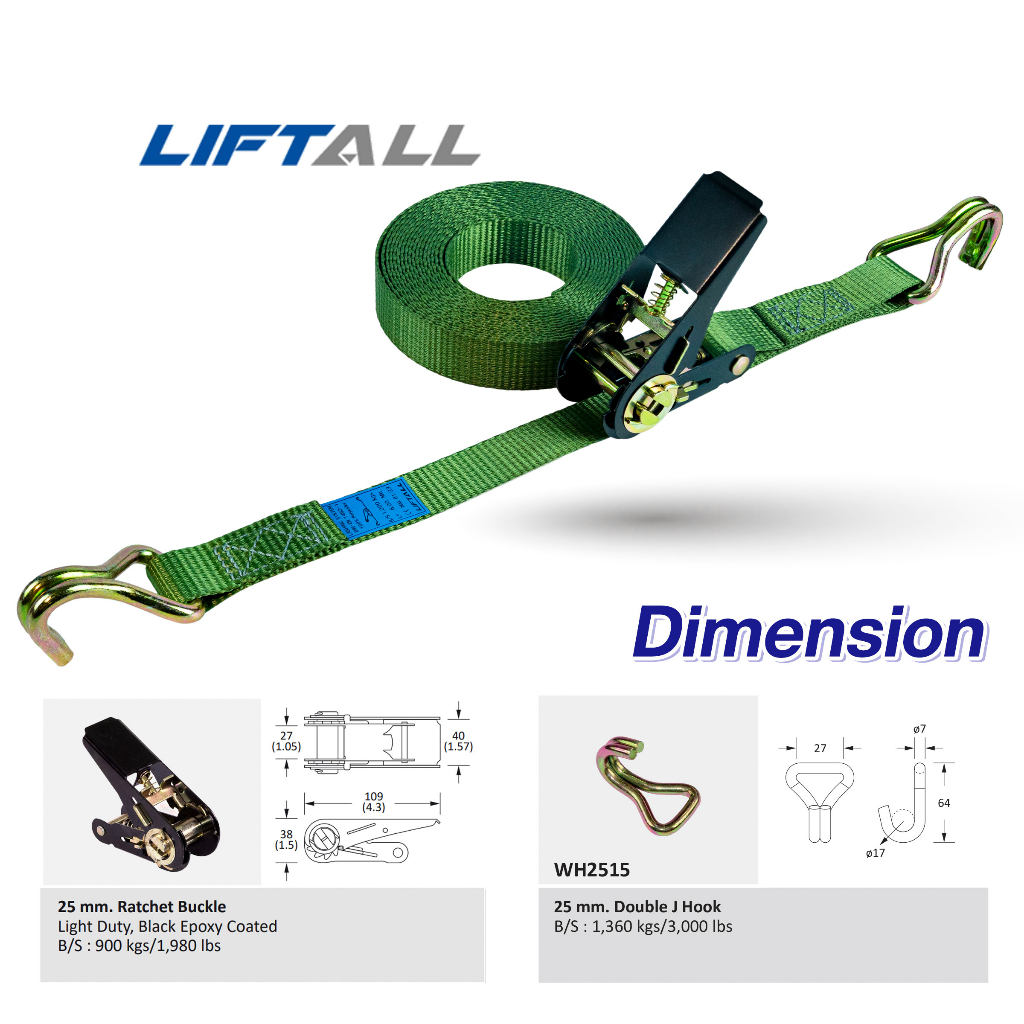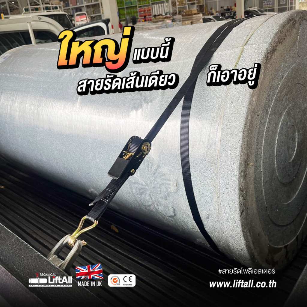 LIFTALL สายรัดของ ขนาด 1 นิ้ว รับ นน. 1 ตัน ชนิดมีตะขอ LSW2510B สายรัด ก๊อกแก๊ก สายเบลท์รัดของ เชือกรัดของ สายรัดรถกระบะ